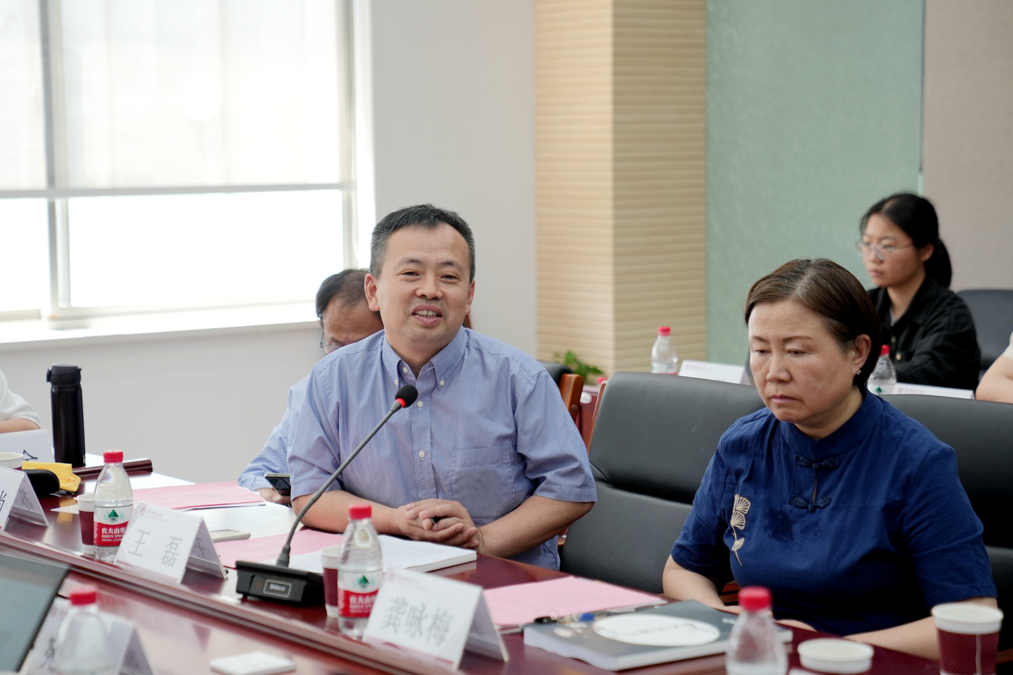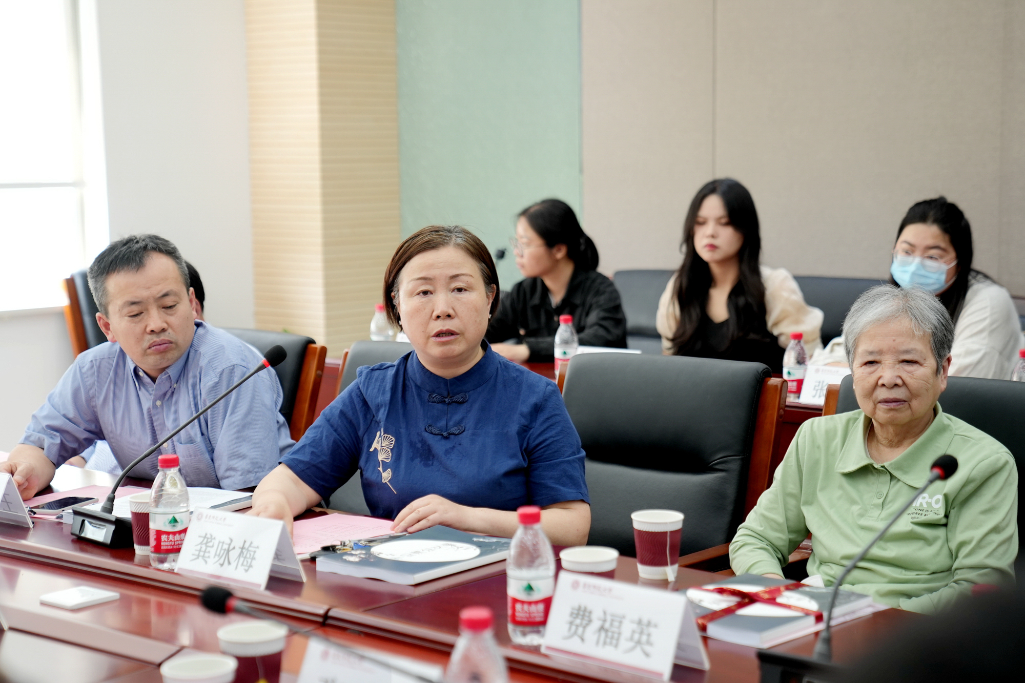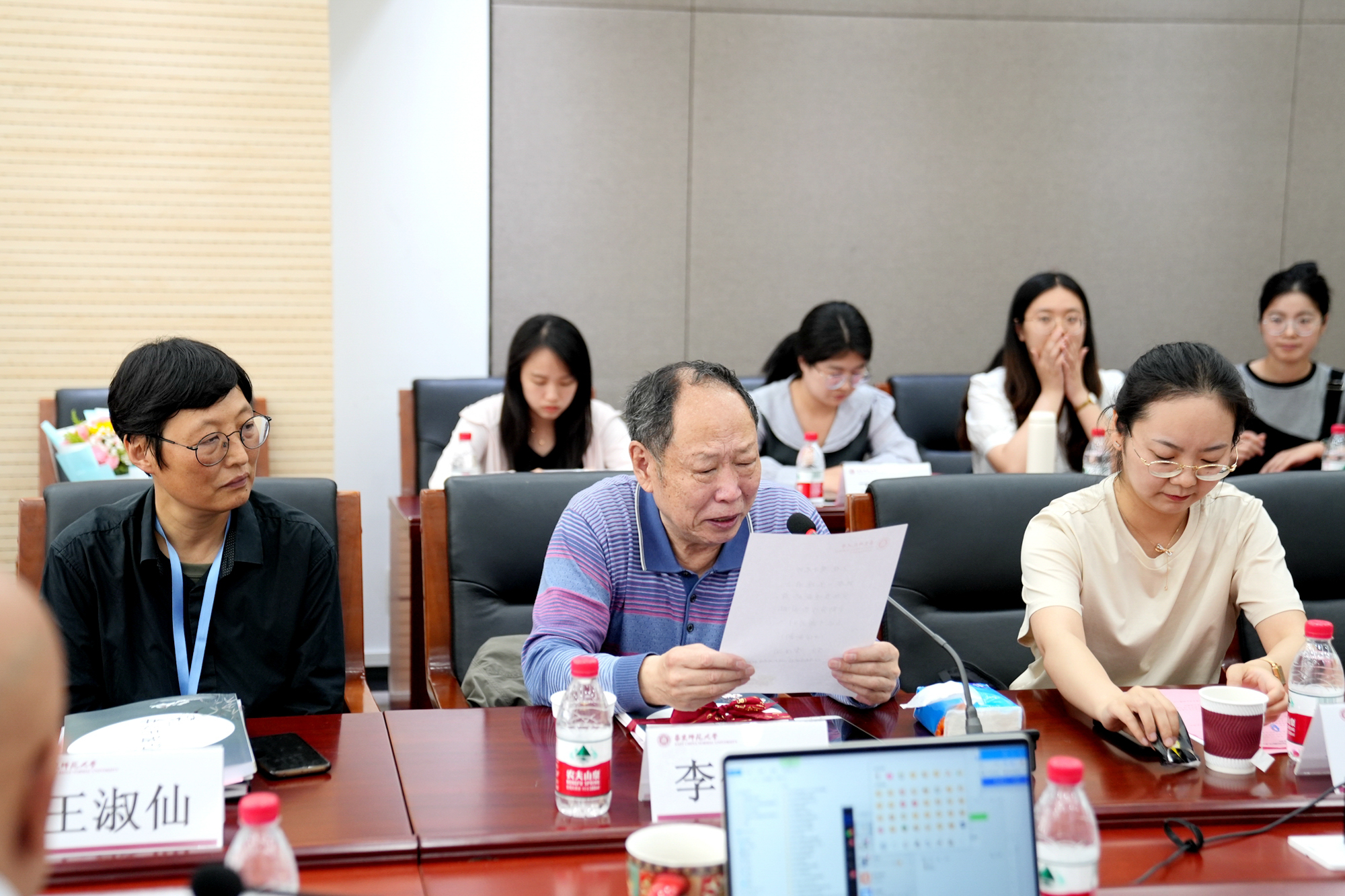 在座谈交流环节,于纪渭先生学生、山东行政学院经济管理专业教授李保润朗诵了为怀念于纪渭先生所作的诗词,表示于纪渭先生担任其政治指导员时的谆谆教诲使他铭记至今,他也用一生的行动践行着当年入党谈话时,当着于纪渭先生向党和国家承诺的庄重誓言。于纪渭先生学生、上海第一纺织机械厂技校讲师费福英回忆了于纪渭先生春风化雨、言传身教、严谨治学的师者风范,表示于纪渭先生是她笃行教书育人之路上的楷模。