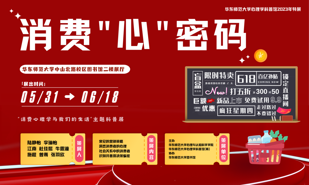 怎样才能通过科学消费获得幸福?这既是对消费终极意义的追问,也是对日常衣食住行的深思。华东师大心理学科普馆2023年特展开幕在即。从消费心理学视角探究“买买买”背后的秘密,为您提供幸福消费的灵感。