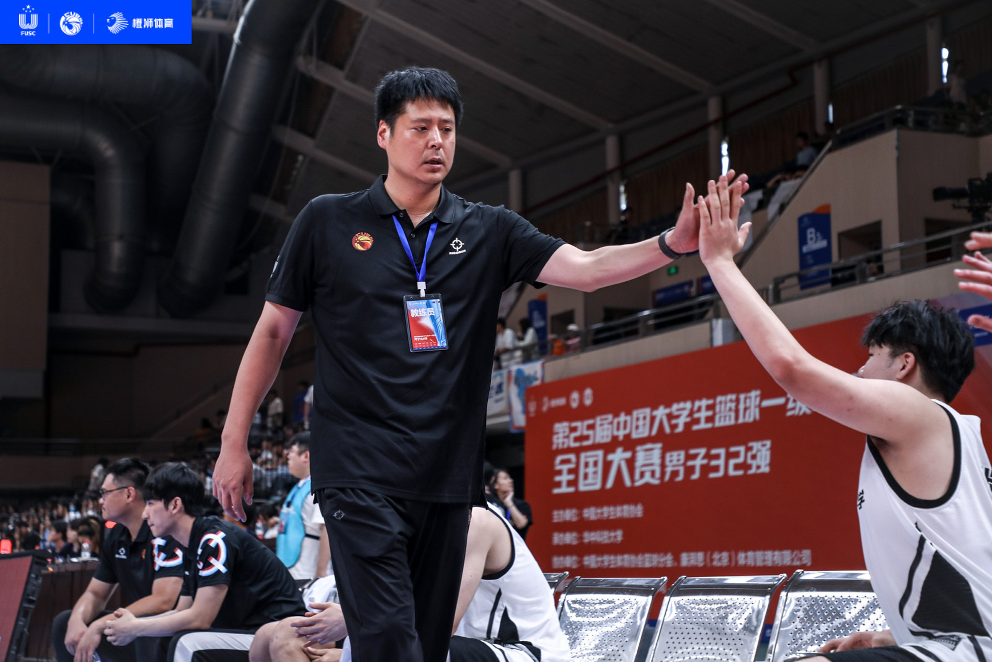 八强赛上,曾经的华东师大男篮队员、如今的主教练孙柳青泪洒球场