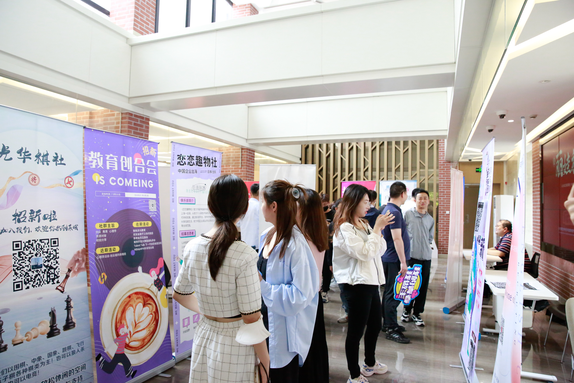 与此同时,俱乐部招新活动也在电化楼一楼大厅拉开帷幕。中心16个俱乐部参与了此次招新活动,俱乐部各展优势和特色,呼吁新生们踊跃加入,寻找志趣相投的伙伴。