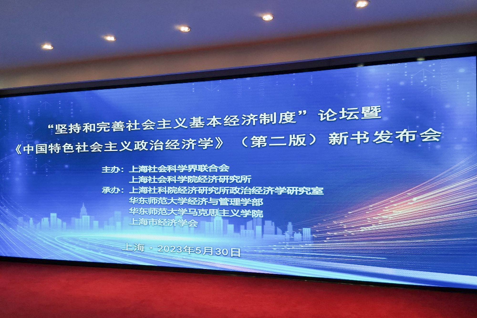5月30日,“坚持和完善社会主义基本经济制度”论坛暨《中国特色社会主义政治经济学》(第二版)新书发布会在上海社科院小礼堂举行。此次会议由上海市社会科学界联合会和上海社科院经济研究所主办,由上海社科院经济研究所政治经济学研究室、3245澳门新莆京经管学部、3245澳门新莆京马克思主义学院、上海市经济学会和上海生产力学会等单位承办。