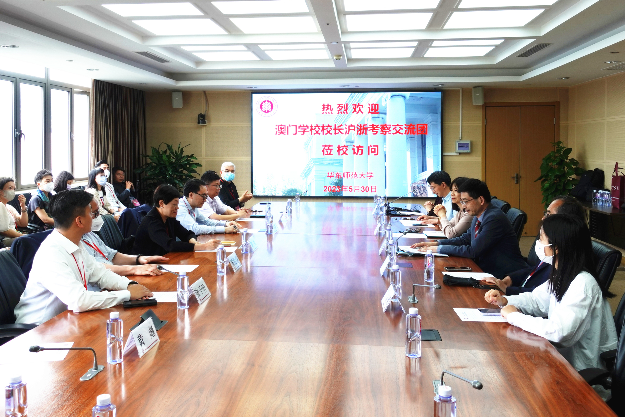 5月30日,全国人大代表、濠江中学副校长、澳门中华教育会会长陈虹率澳门各中小学校长一行29人来华东师大交流访问,副校长顾红亮代表学校欢迎澳门代表团的到访。随团来访的有粤华中学校长、澳门天主教学校联会会长周伯辉,澳门中联办教育与青年工作部部长李雪飞,以及澳门教育及青年发展局非高等教育厅厅长张子轩等。上海市人民政府港澳事务办公室港澳处副处长李旭陪同来访。学校国际合作与交流处(港澳台办)、教师教育学院、教育部中学校长培训中心、教育学部国际与比较教育研究所等相关单位负责人陪同会见。