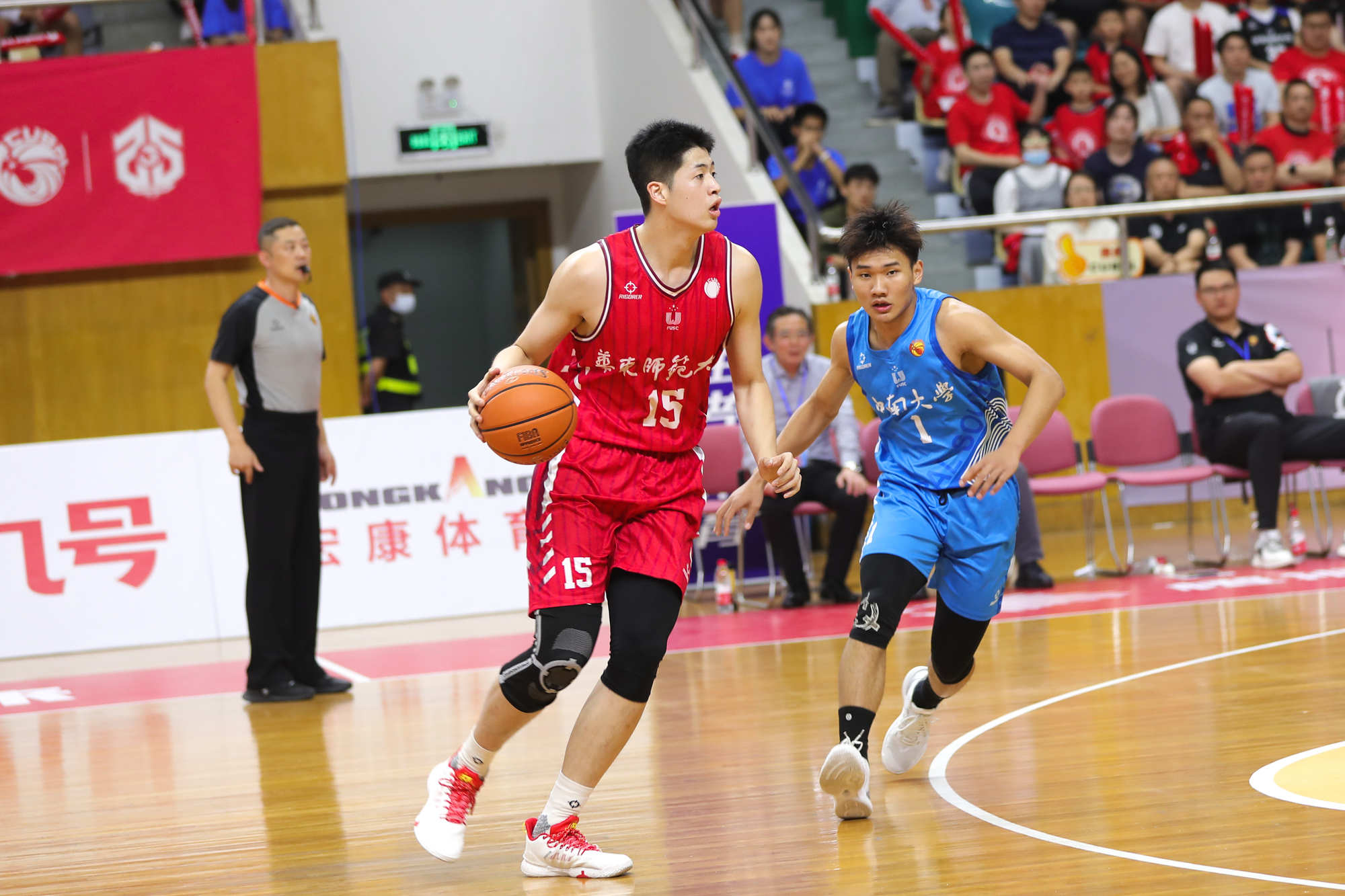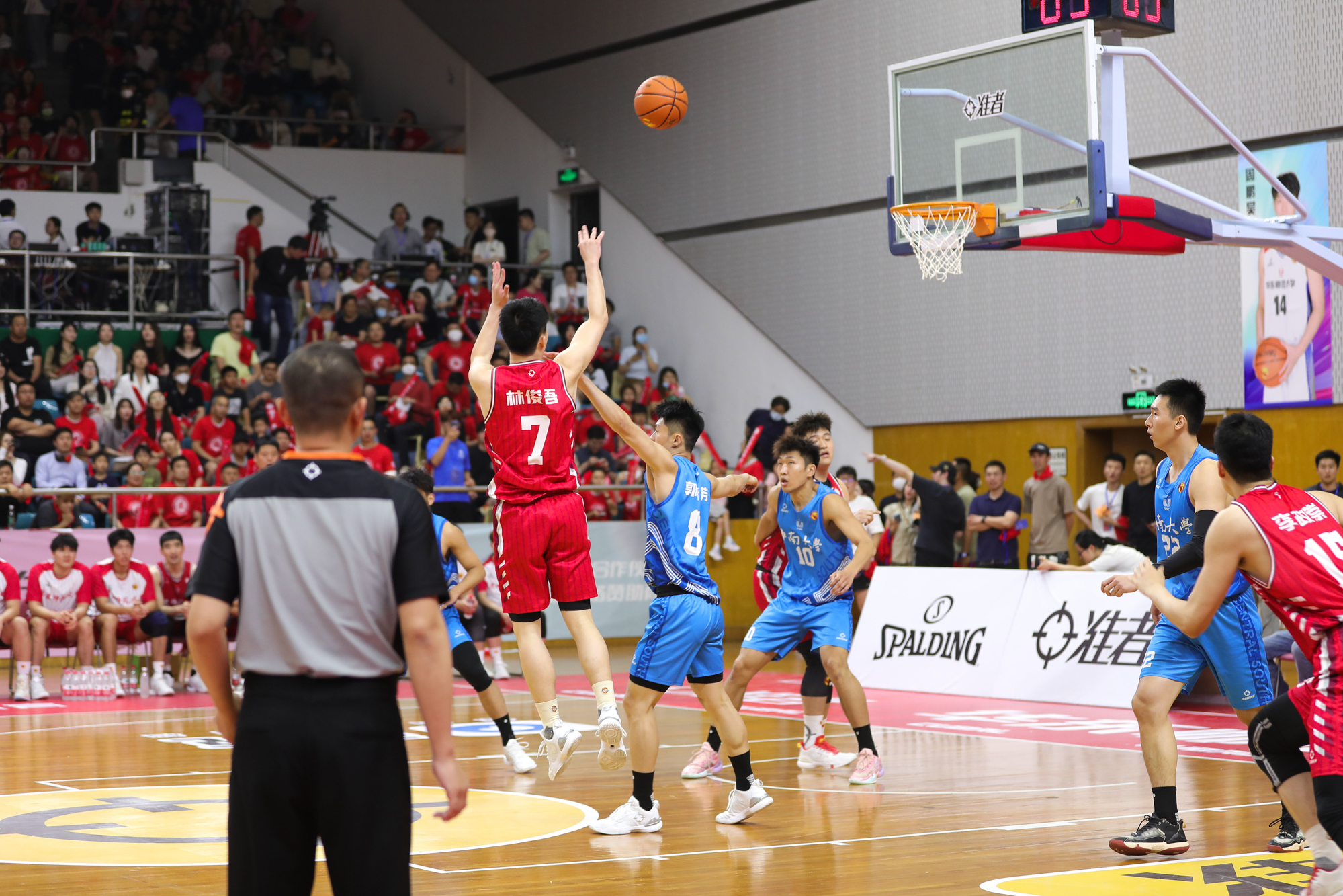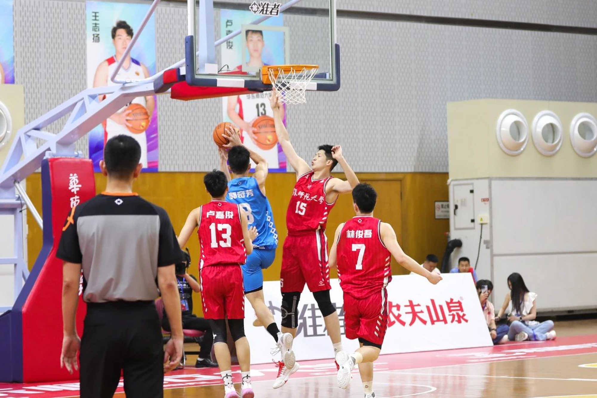 暂停回来,林天驹一记中距离命中,对手则以三分还以颜色,比赛进入白热化阶段。