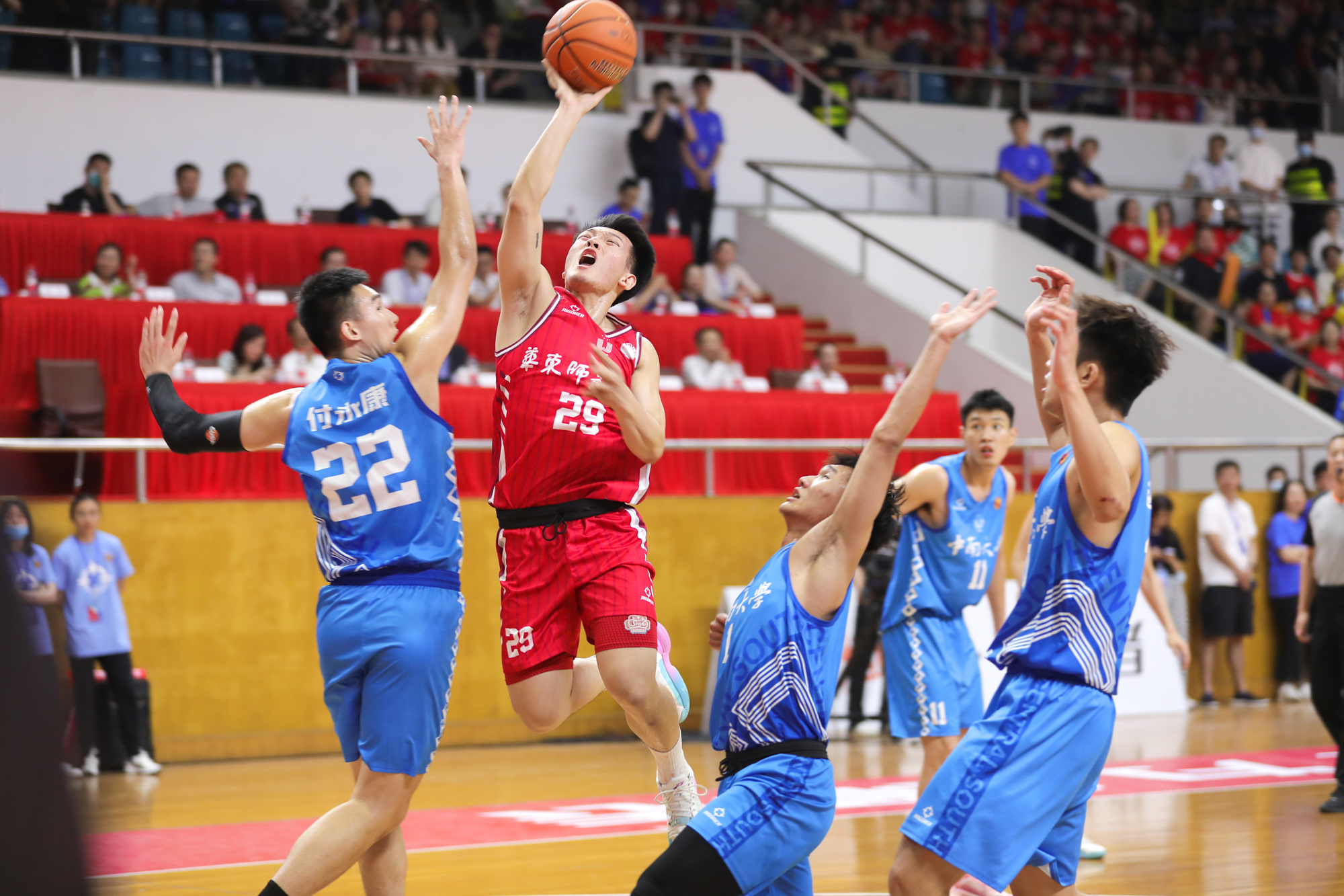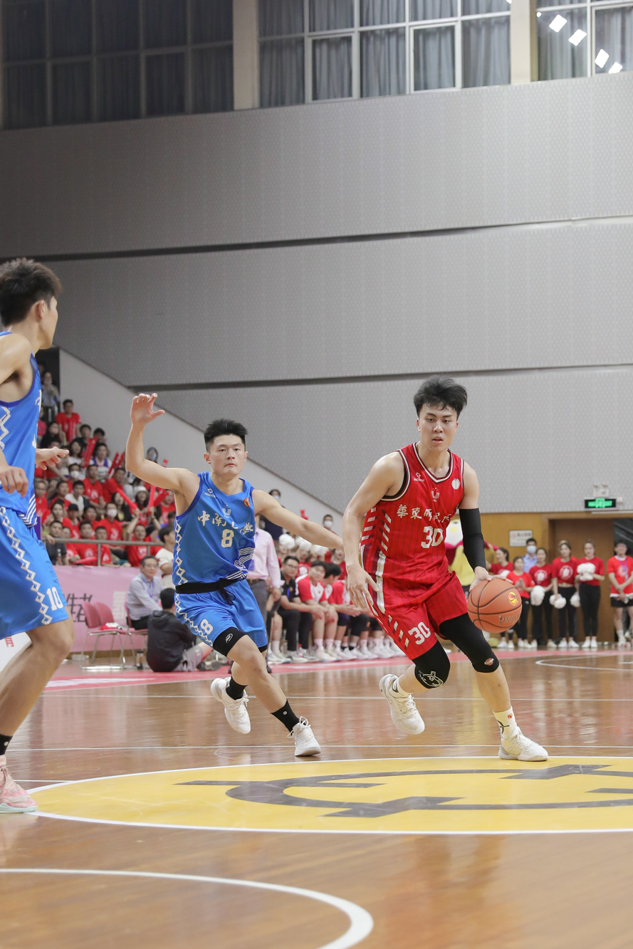 比赛最后时刻,杨东内线威力不减,丁超和卢嘉俊也在外线持球突破,直到比赛最后时刻,华东师大男篮仍在奋斗拼搏。