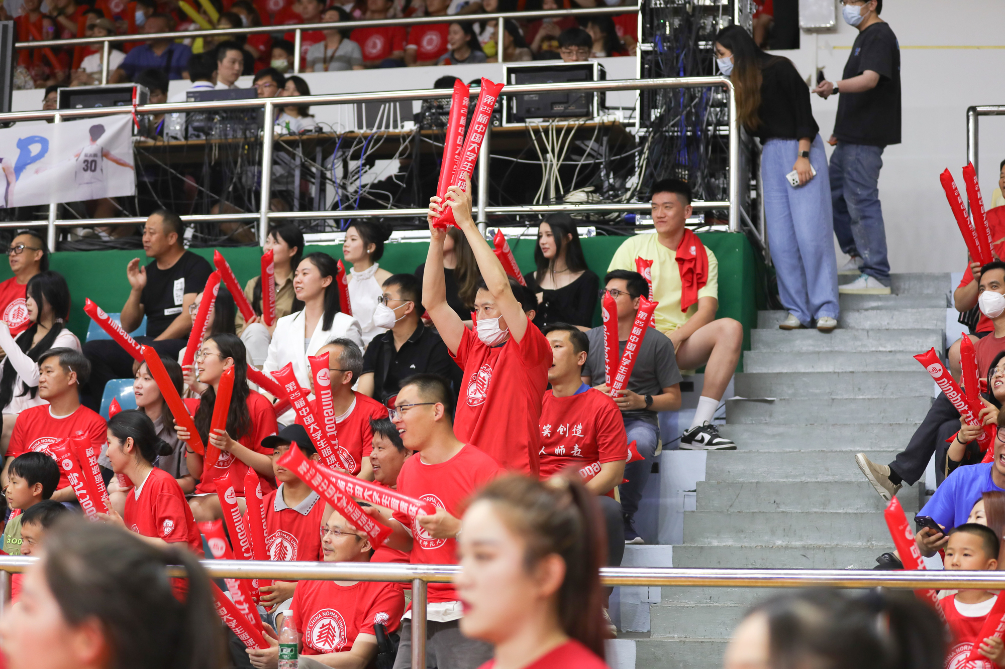 普陀校区体育馆座无虚席,全国八强队华东师大、中南大学强强对话,唤起了无数人对于篮球的热爱。漫天挥舞的旗帜、响彻全场的呐喊、精彩绝伦的表演,一场用青春等来的“全国大赛”让人热血沸腾,师生校友主场观赛直呼“过瘾”。