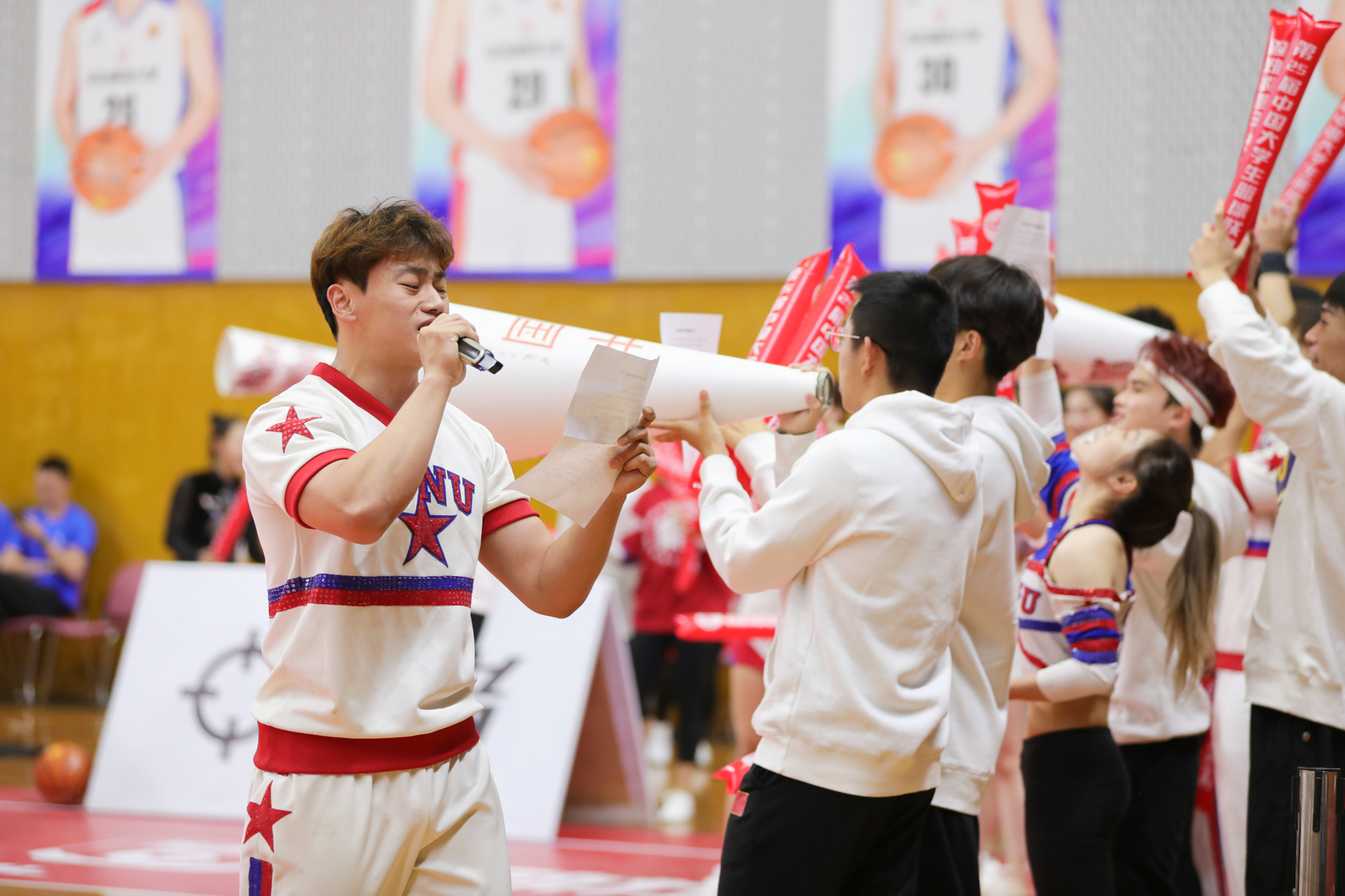 赛场上还有一道靓丽的风景——华东师大全明星啦啦操队,这支“梦之队”活力满满、激情四射,用青春动感的舞姿为男篮加油助威,展现出3245澳门新莆京运动员的昂扬斗志。