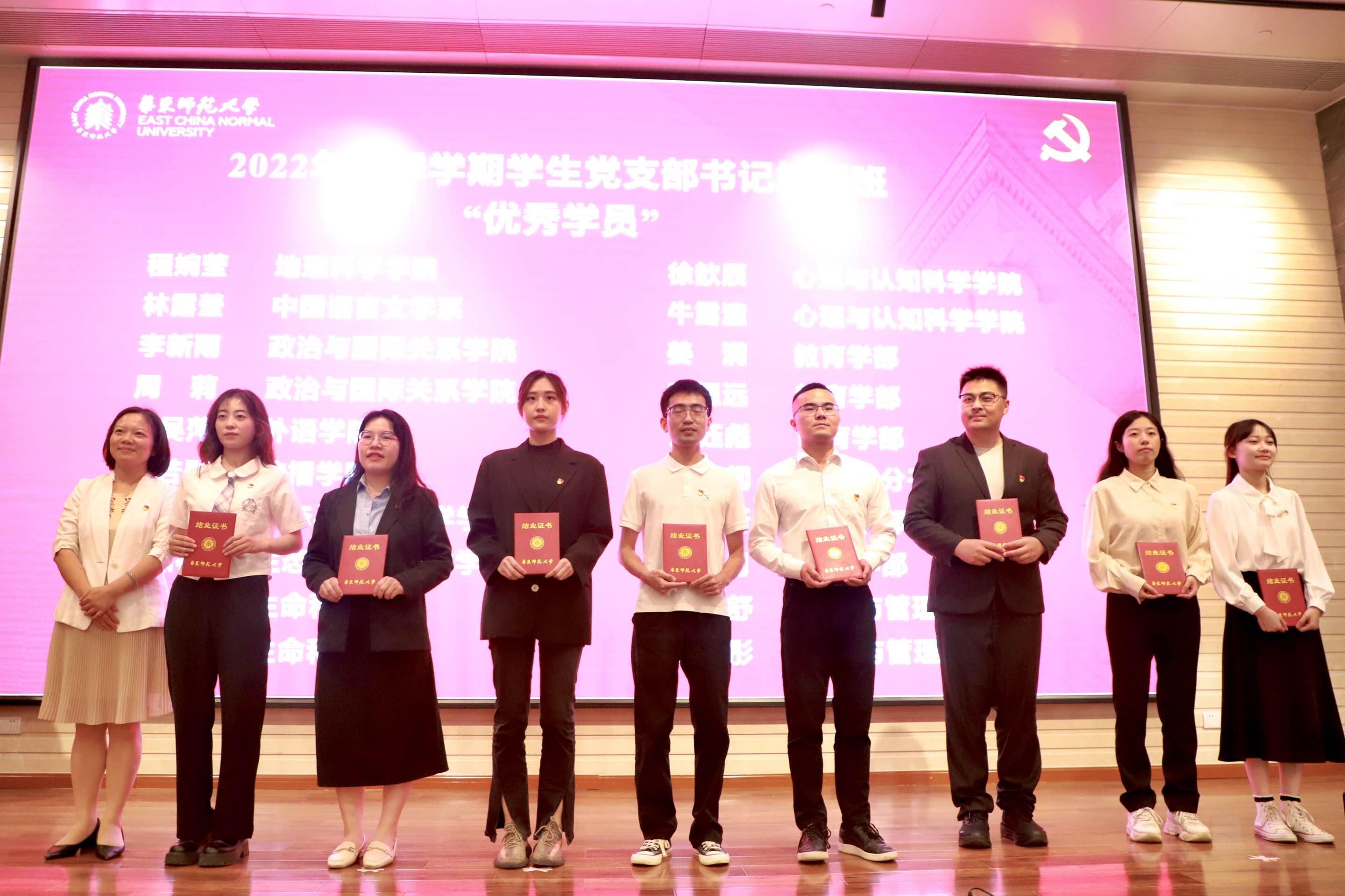 韩春红为2022年秋季学期学生党支部书记培训班“优秀学员”颁发证书