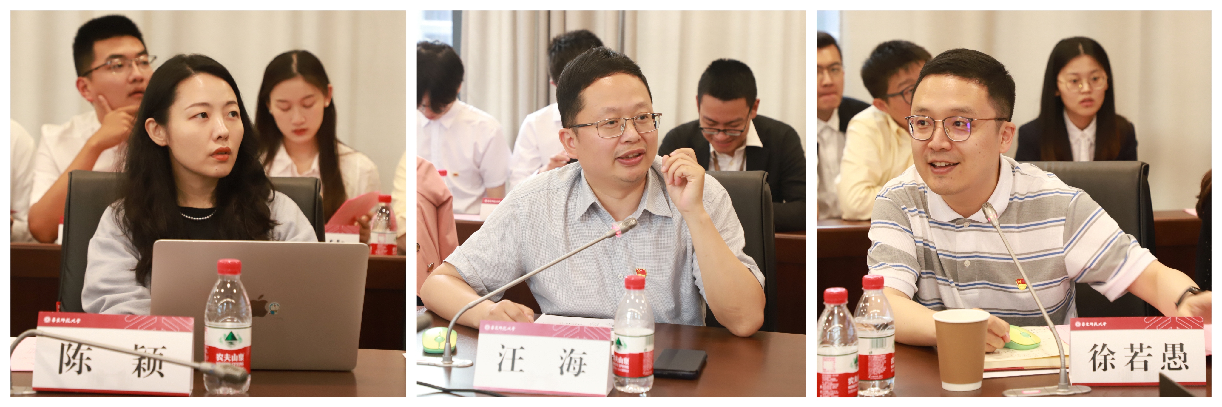 教育学部陈洪莹、经济与管理学部张耀文、马克思主义学院刘若雪、地理科学学院宋智超、计算机科学与技术学院余晗、政治与国际关系学院高猛等奔赴各地基层的2023届选调生代表依次发言,交流心得体会。