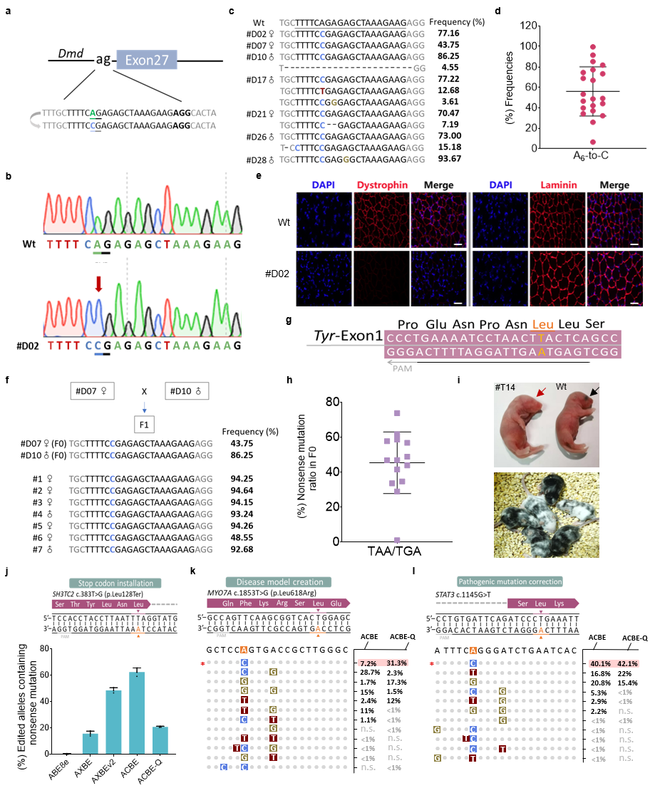 ACBEs在小鼠体内精确编辑以及在细胞系中模拟或纠正人类致病SNVs