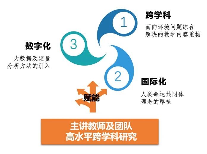 为让学生能够深入到全球的环境治理,尤其是气候变化等人类共同关切的事项中,王欢欢老师引入英文文献阅读、外国专家授课与在线交流、鼓励学生参加国际性比赛等机制,实现课堂微观层面的跨国界协同育人,提升学生对人类命运共同体理念的感悟。