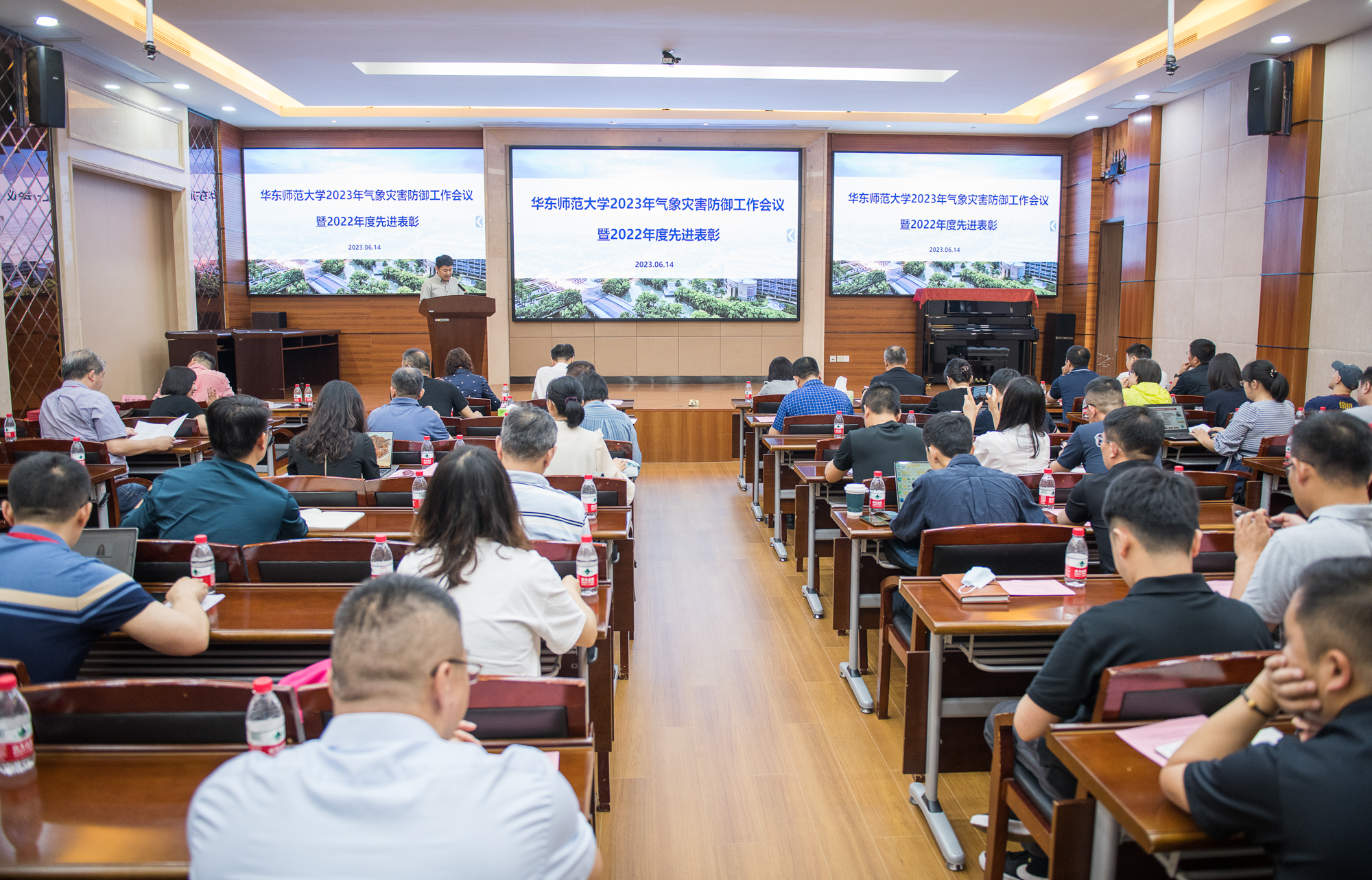 6月14日,华东师大2023年气象灾害防御工作会议暨2022年度先进表彰会议在普陀校区召开。副校长、校气象灾害防御暨防汛防台工作领导小组组长戴立益出席会议并讲话。会议由后勤保障部副部长董镕主持。