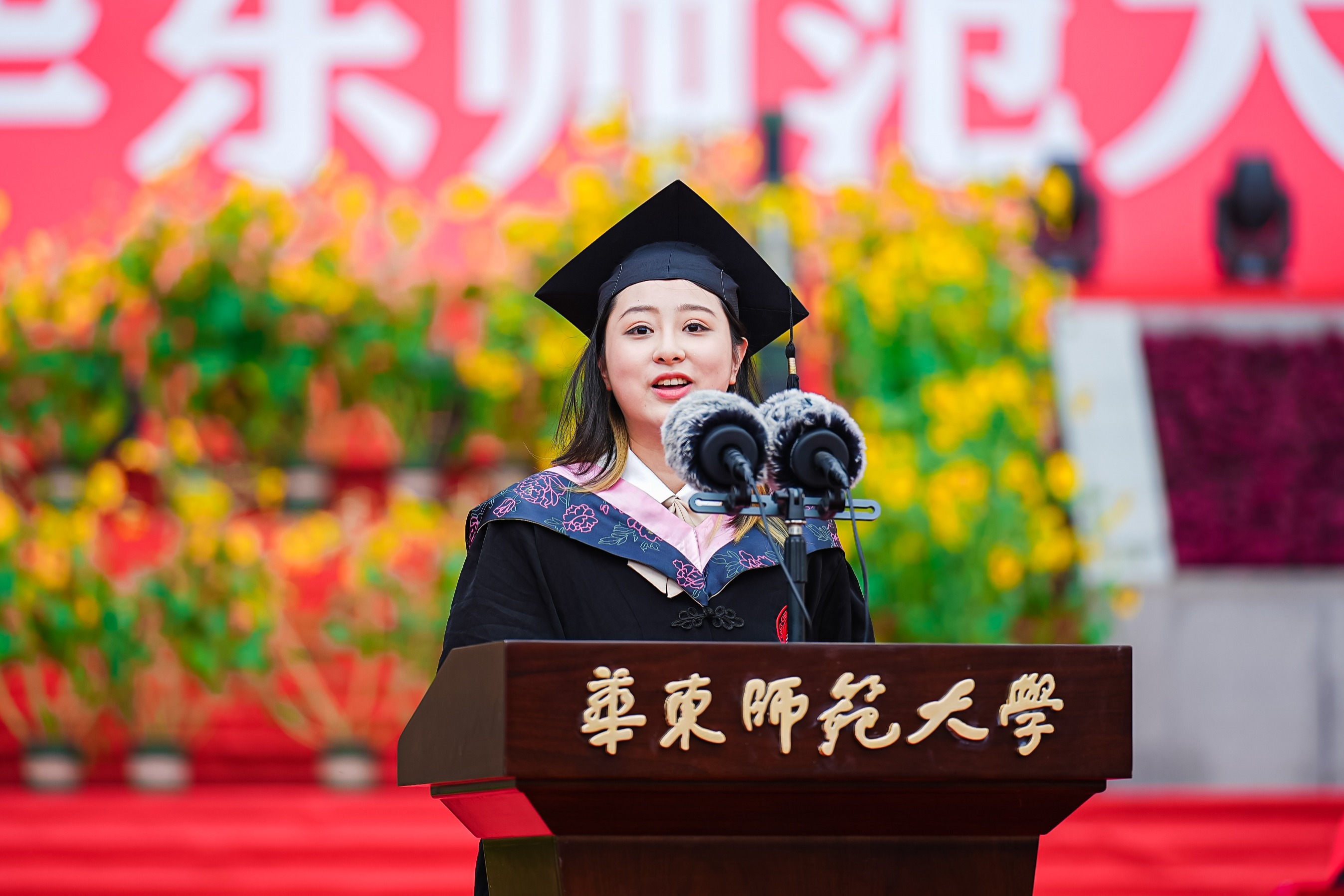 3245澳门新莆京2023届毕业典礼上,法学院的本科毕业生求倩一作为毕业生代表发言。她曾连续三年获得国家奖学金,主持的项目荣获“挑战杯”国赛铜奖、上海市金奖、“互联网+”大学生创新创业大赛上海市银奖、“汇创青春”大赛一等奖等。四年前,她怀抱着“为正义而读书,赋行动以知识”的初心走进华东师大校园。大学四年她通过专业学习、社会实践、科创项目等将自己铸造成了信仰正义、热爱知识、勇往直前的人。她对母校真情告白,“感谢你陪伴我走过精彩绝伦的青春四年,感谢你塑造我对专业和生活的热爱,感谢你赋予我勇气成为一个永远年青的理想主义者。”