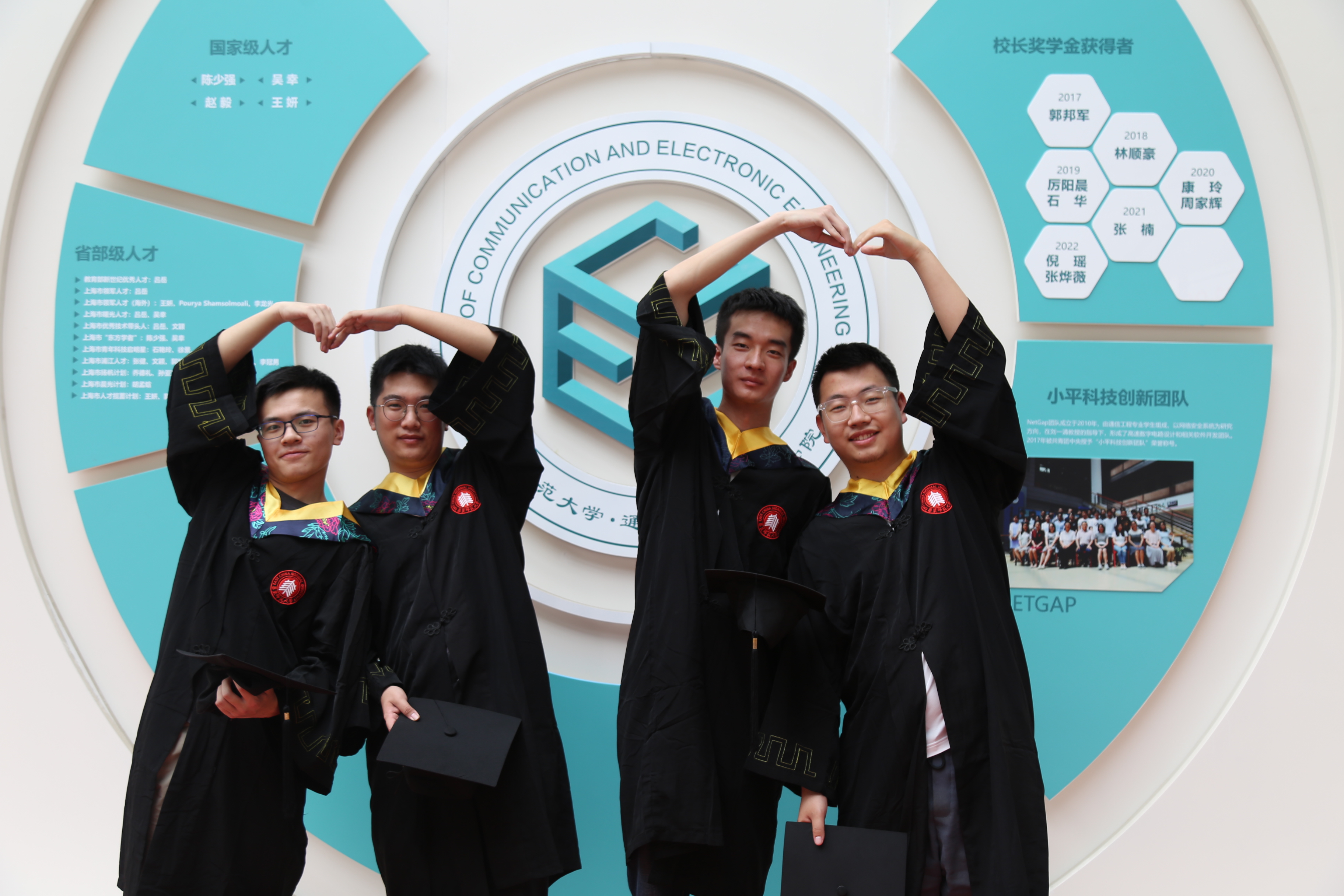 华东师大信息学部通信与电子工程学院16号楼419寝室,夏志坤、刘子傲、王道辉、段朝真,用他们的故事证明,优秀就是1+1+1+1>4!