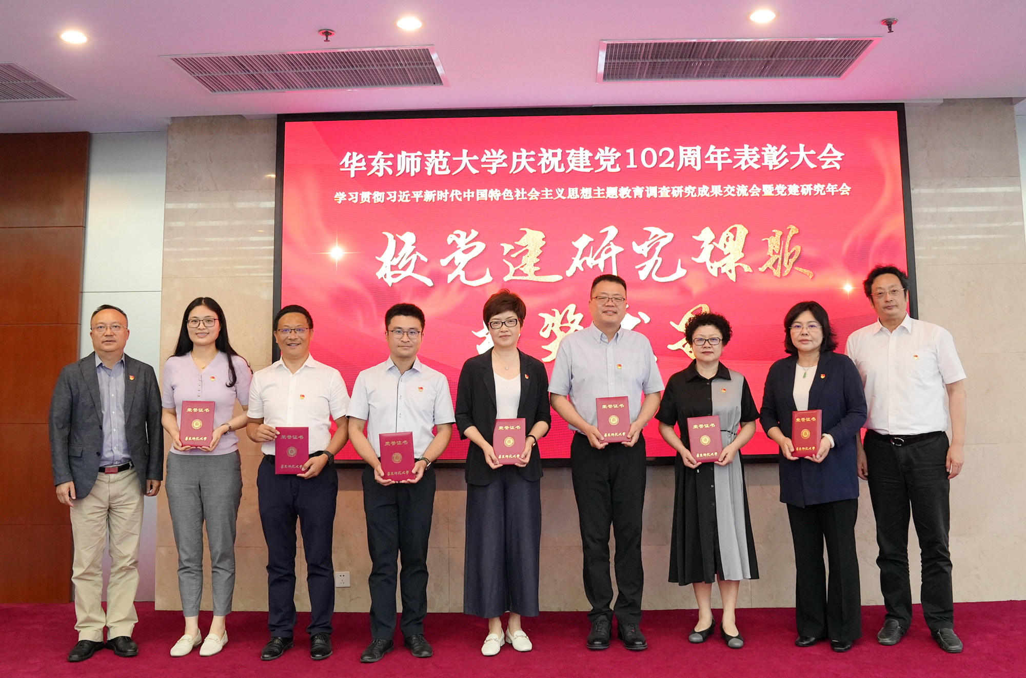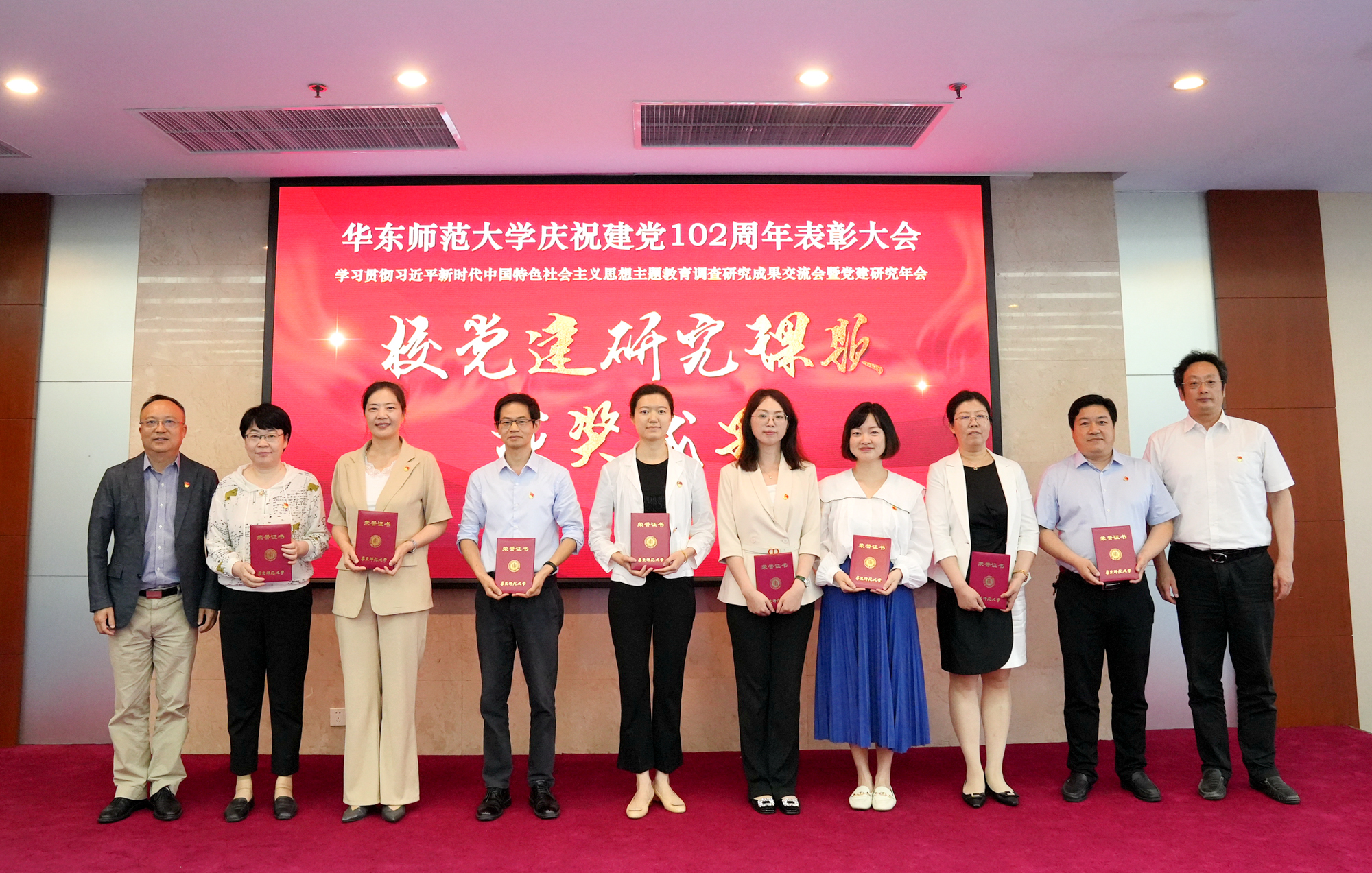 校党委书记梅兵,校长、党委副书记钱旭红,校党委副书记曹友谊,校党委常委、副校长雷启立、施国跃为受到表彰的先进典型、课题团队颁奖。