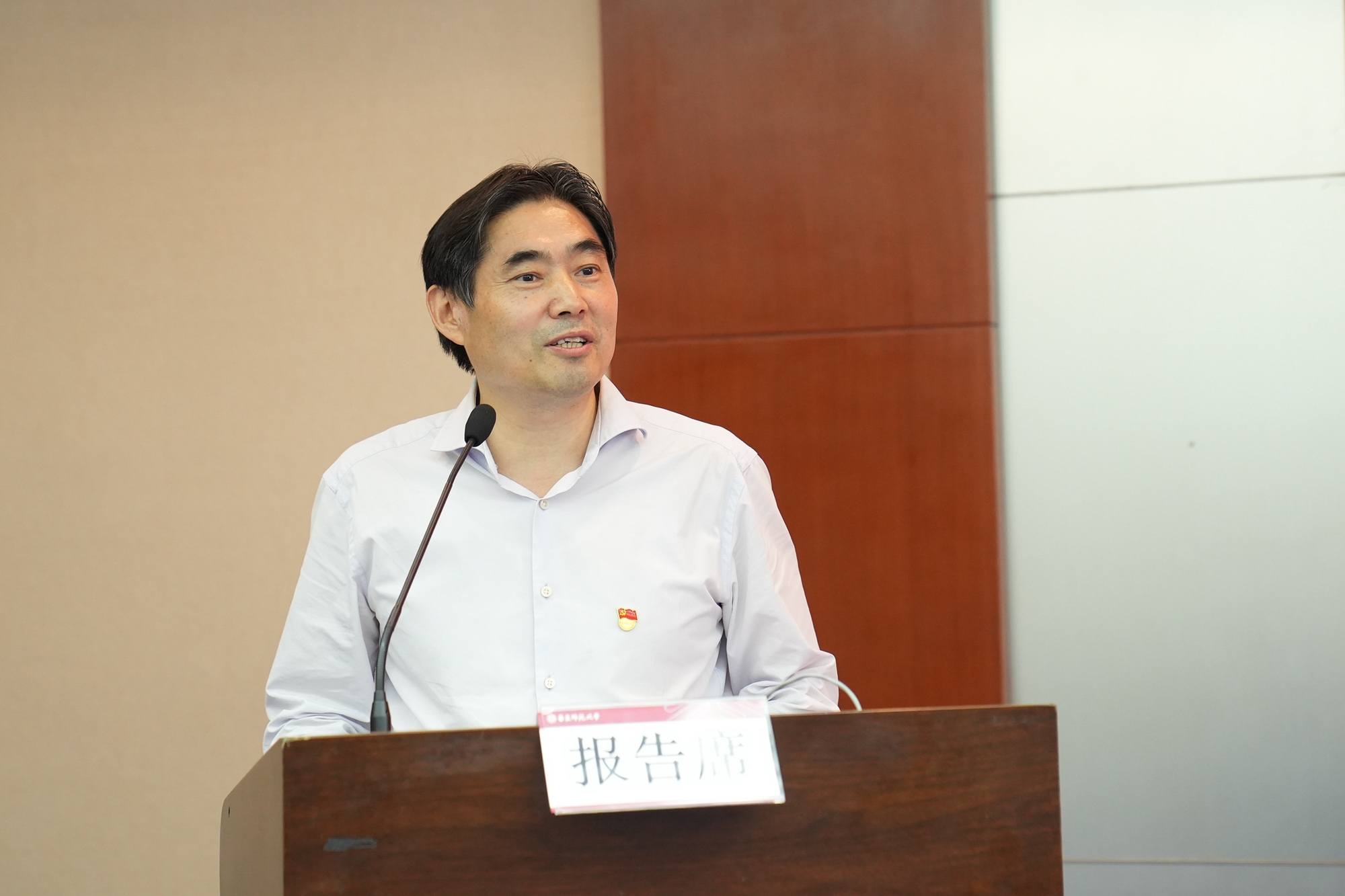 校主题教育领导小组办公室主任、校党委副书记孟钟捷作学校主题教育调查研究情况报告