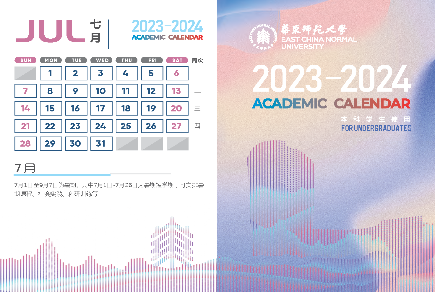7月1日至7月26日为本科暑期短学期。