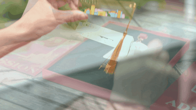 博士、硕士录取通知书分别以红色、蓝色区分。入学纪念品由卡套和书签组成。卡套设计了三种色彩搭配,以盲盒的形式投递。
