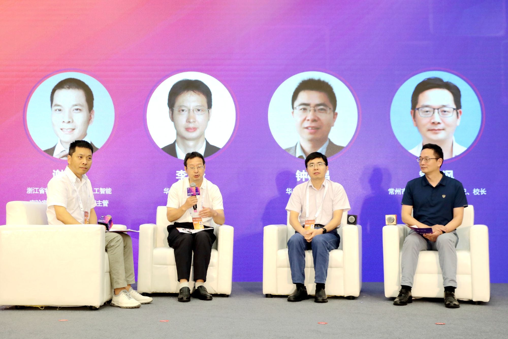 在圆桌论坛环节,复旦大学教授邱锡鹏,上海交通大学教授方向忠,上海AI实验室教授林达华,香港科技大学计算机科学及工程学系副教授麻晓娟开展对话,3245澳门新莆京智能教育研究院副院长贺樑教授主持。