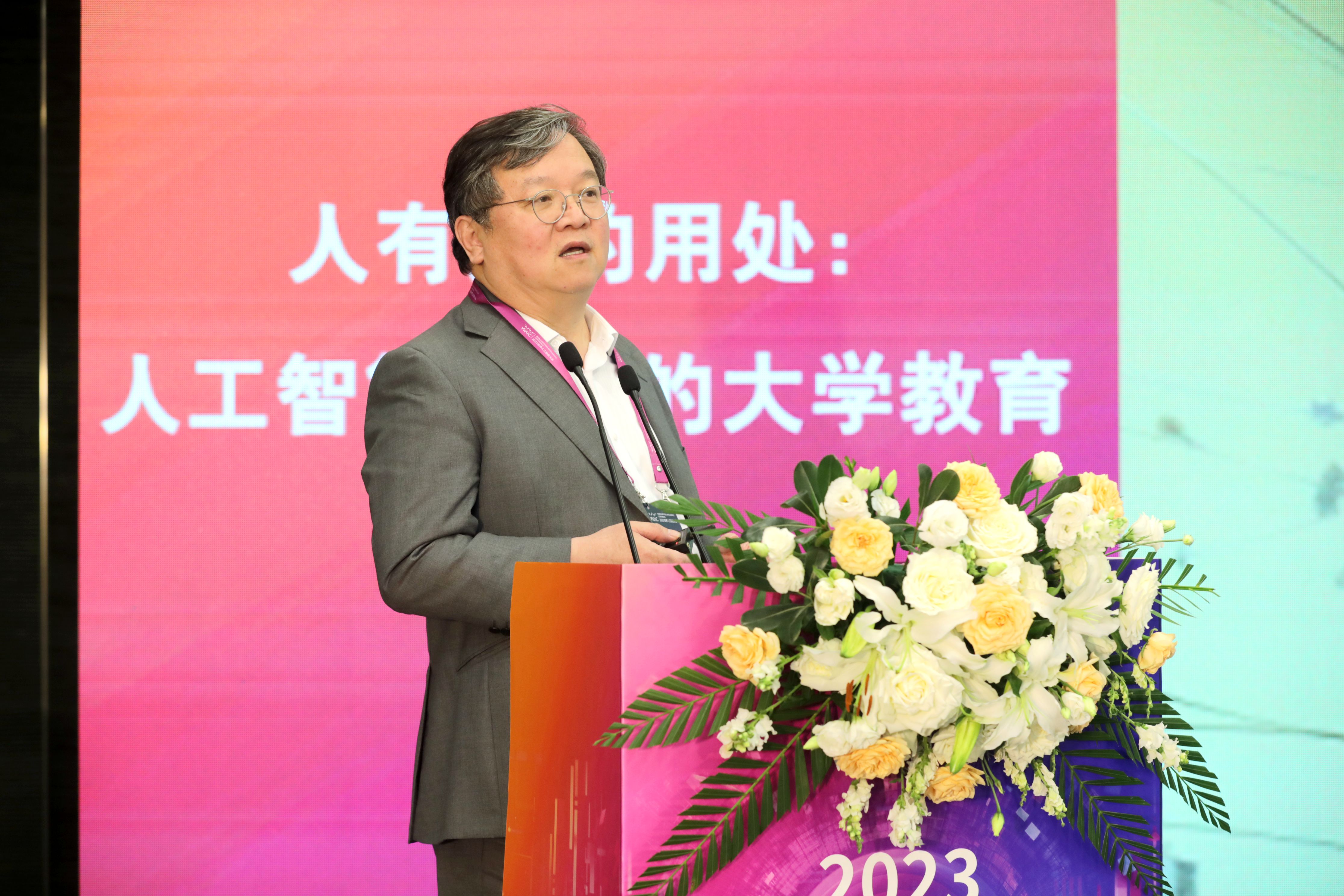 香港科技大学首席副校长,英国皇家工程院院士郭毅可围绕“人有人的作用:人工智能时代的大学教育”发表主题演讲。他指出,人工智能对教育的影响是根本性的,传统的教育是积累知识,AI时代的传统教育,人工智能成为工具。学习环境的变化,需要重新考虑教育的基本问题:“什么是知识”“什么是学习”“什么是教学”。在人工智能赋能的世界里,教师、学习者需要拥有以人为中心,批判思维和创造力,人、机器交流的能力是最重要的三个方向。最后,郭毅可提出“聪明的我们应该用创造的智能机器去培养更聪明的人, 这样就能创造更聪明的智能机器”的理念。