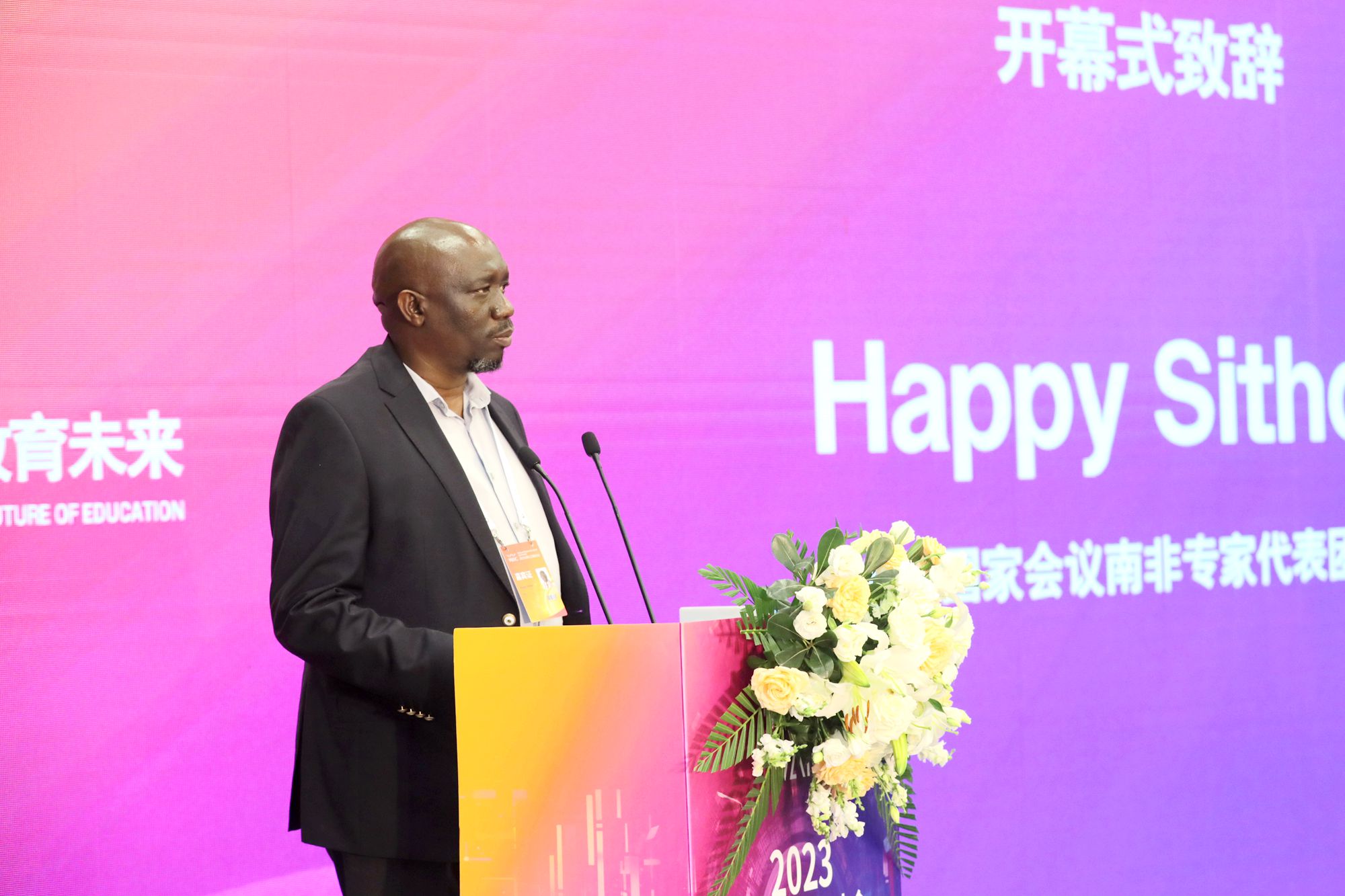 金砖国家专家代表、南非代表团团长Happy Sithole博士在致辞中提出在发展人工智能的同时,需要用先进的人工智能去发展教育。他表示,智能教育的发展需要加强各方的合作,特别是加强南非与中方的交流。
