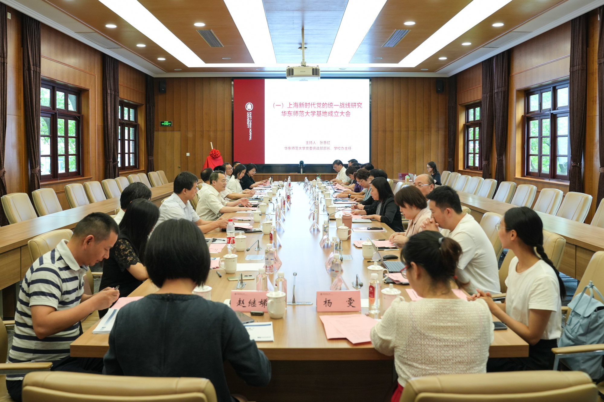 华东师大党委统战部部长、学校办公室主任张惠虹主持基地成立大会