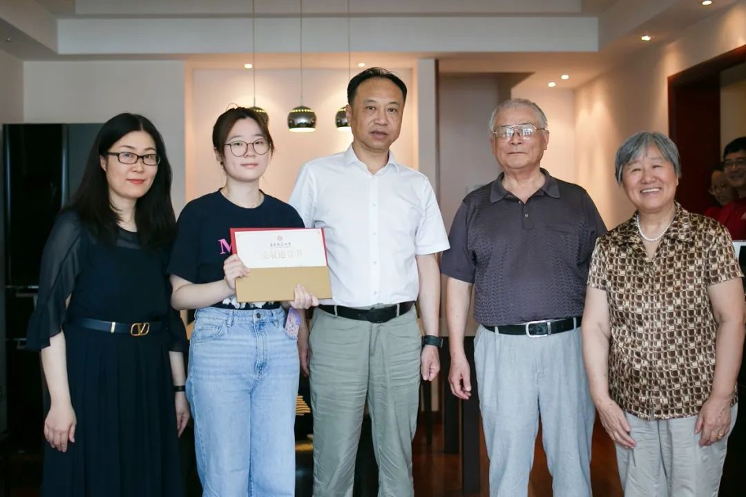 华东师大0001号录取通知书由副校长戴立益亲手送抵 “收件人”万沣玮同学的手中