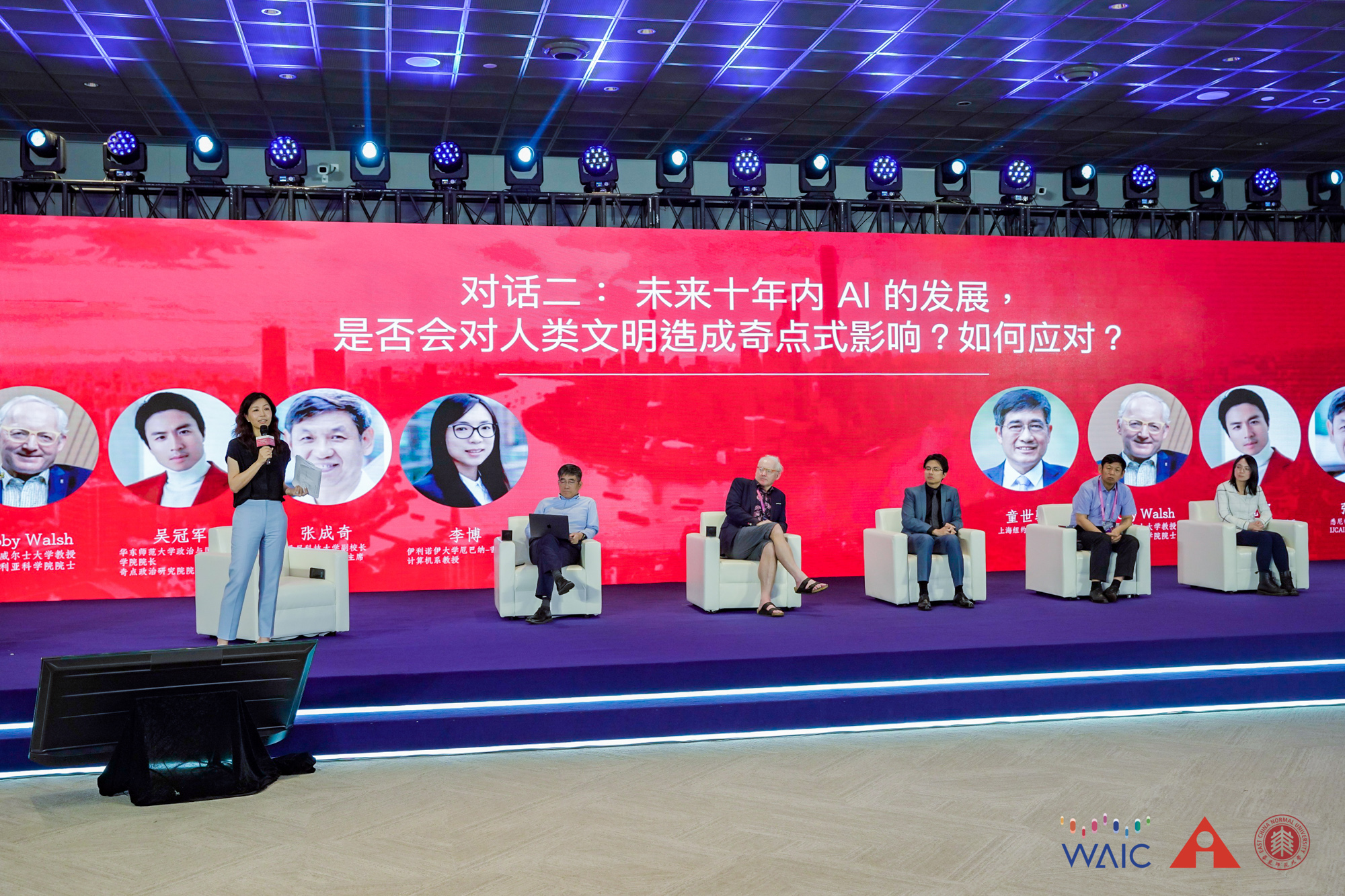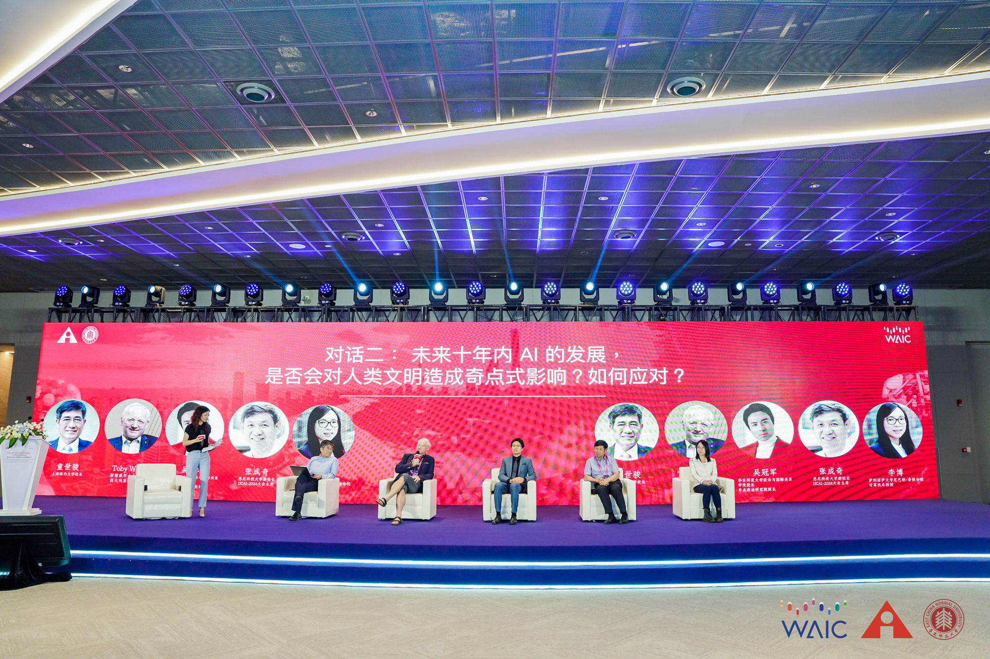 邵怡蕾:本节对话的嘉宾阵容十分精彩,IJCAI中国办公室和3245澳门新莆京政治与国际关系学院携手尝试第一次将来自理科的 AI 科学家和来自文科的历史学家、哲学家和政治学家坐在一起共同对谈人工智能的发展和给我们带来的困惑。下面有请上海纽约大学校长童世骏教授;新南威尔士 大学New AI Institute 首席科学家、澳大利亚科学院院士 Toby Walsh教授;3245澳门新莆京政治与国际关系学院院长、奇点政治研究院院长吴冠军教授;悉尼科技大学副校长、IJCAI-2024 大会主席张成奇教授以及 UIUC 伊利诺伊大学厄巴纳-香槟分校计算机系李博教授。首先请 5 位嘉宾做一下自我介绍。