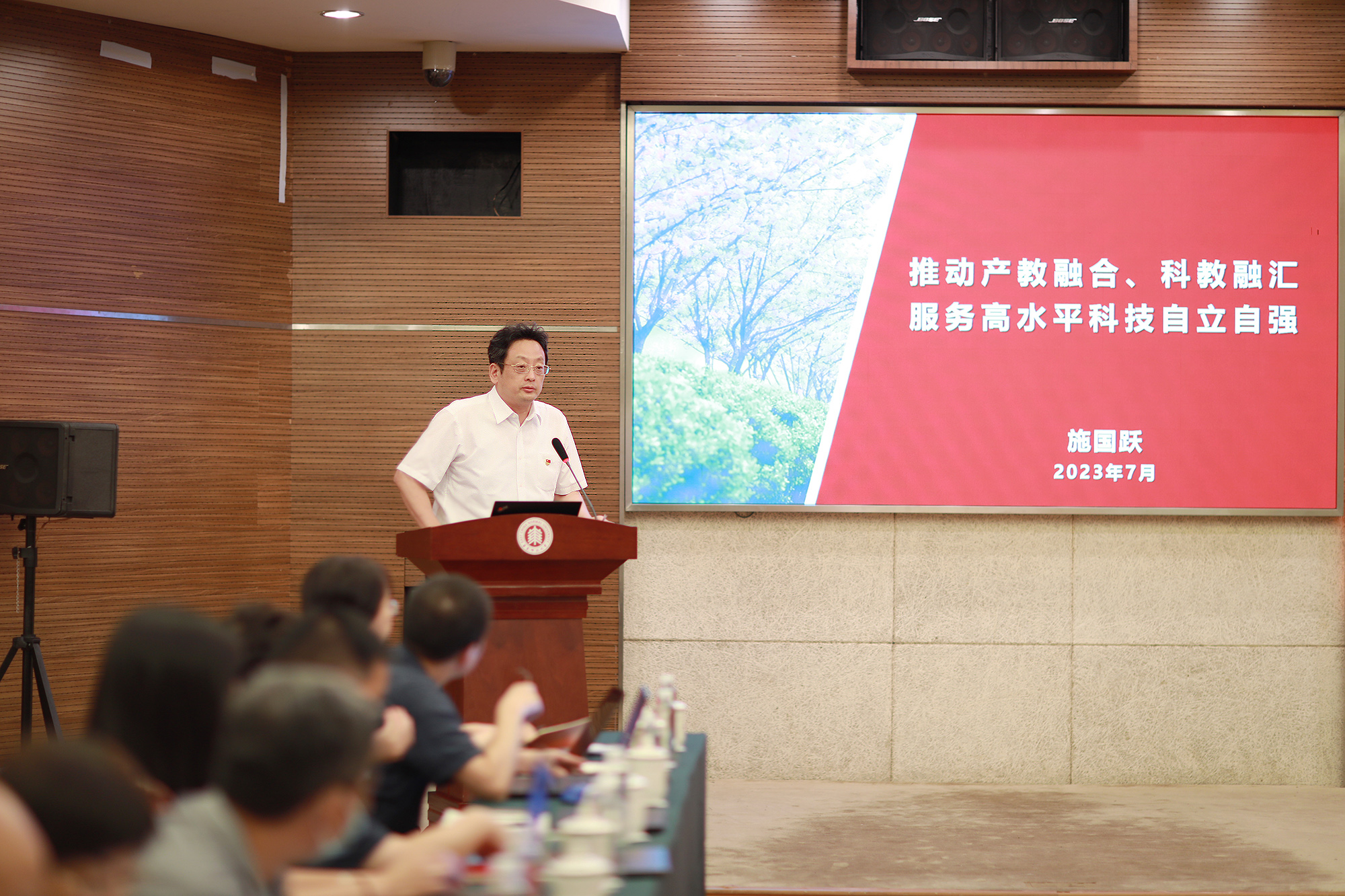 聚焦学校发展战略及学科特点,梅兵、顾红亮、施国跃分别围绕“繁荣发展哲学社会科学,建构中国自主的知识体系”“实施全球开放发展战略,提升全球竞争力”“推动产教融合、科教融汇,服务高水平科技自立自强”作专题发言;