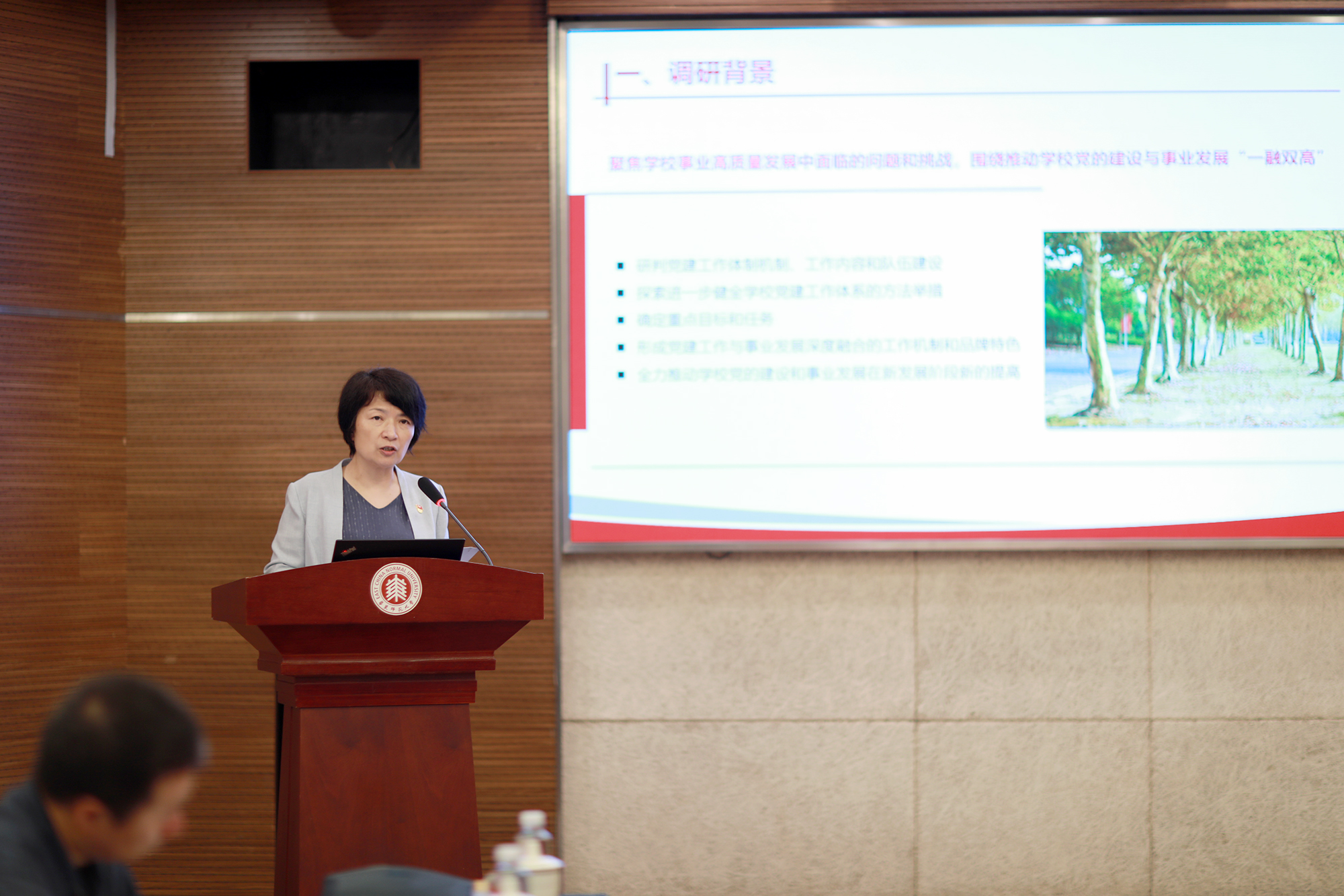 三是要切实把调研成果转化运用落到实处。强调要把调研成果转化为推动学校事业高质量发展、解决师生群众急难愁盼问题、贯彻落实全面从严治党的实际成效。要一体化推进主题教育理论学习、调查研究、推动发展、检视整改、建章立制,以高质量党建促进高质量发展,为学校事业发展谋划好新的篇章。