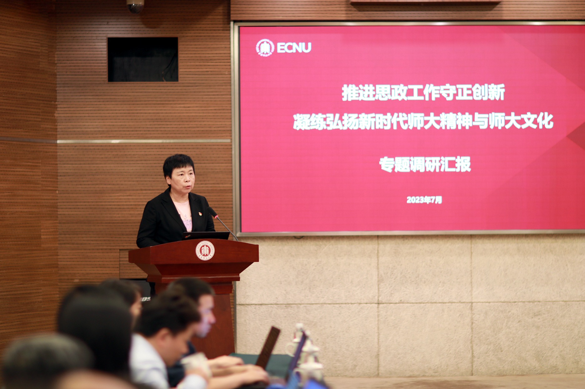 结合主题教育阶段性调研成果,校领导班子成员分别围绕高质量党建引领新发展、一流综合性研究型大学建设、学校发展战略及学科特点、卓越人才培养及队伍建设等方面作了交流发言和深入研讨,聚焦华东师大发展的全局性、战略性问题,深入交流、集思广益,掌握实情,形成共识,创造性回答“强国建设,教育何为”的重大命题,以高质量发展的“师大答卷”回应“强国建设、高校何为”的时代之问和“师范强教、教育强国”的时代主题。