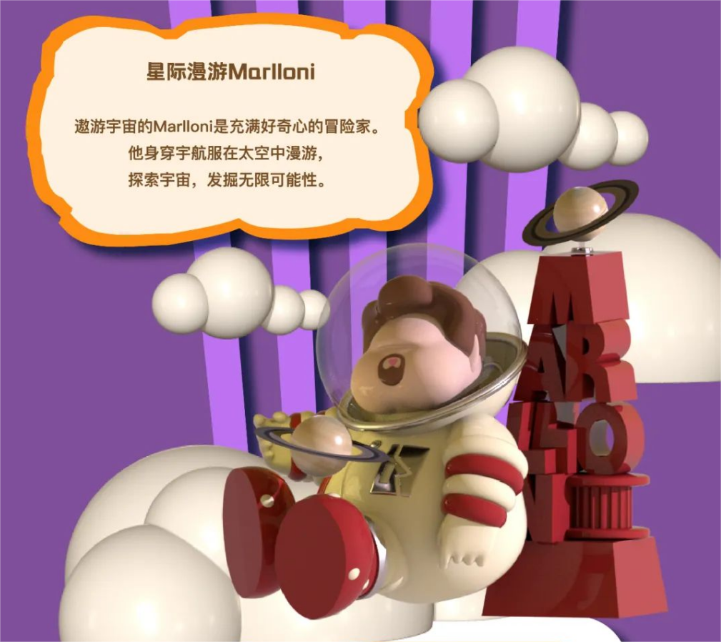 首次发布的神奇的马罗尼(Magic Marlloni)数字藏品是由设计学院2021级视觉传达专业本科生胡佳怡同学创作。胡佳怡常利用课余时间和实际项目来扩展专业表现能力以及辅助设计技术,希望能够掌握更多的技术和手法来支撑她的设计想法。