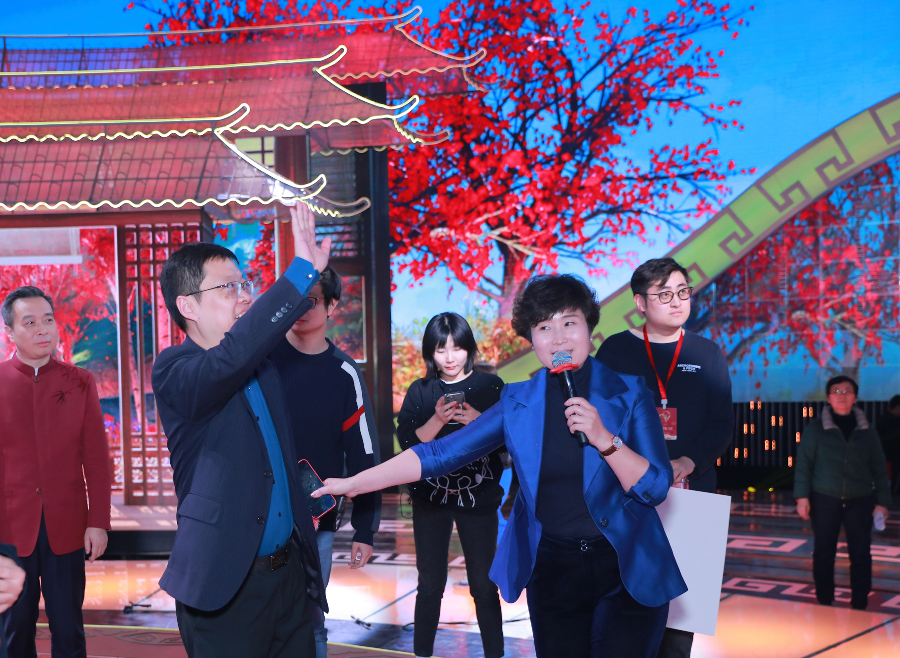 图片方笑一教授(左二)在《中国诗词大会》录制现场向百人团选手致意