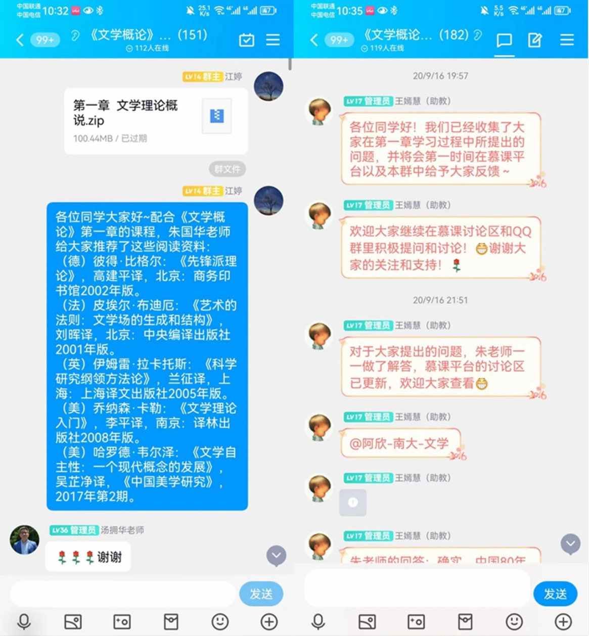 《文学概论》除了面向华东师大中文系学生实施混合式教学,还面向外系学生及其他高校学生和社会开放,让优质教学资源惠及各专业学生和广大热爱文学的社会群体。2019年12月后第一期课程陆续上线时,国内正面临严峻的疫情防控形势,热爱文学的广大群体对线上学习有着较高的热情,《文学概论》课程正好为他们提供了高质量、高水平的线上学习内容。最终,该期选课总人数高达17835人。学生数量之多,覆盖国内各大知名高校;课程影响之大,在学术界和高教界获得了一致好评,“显示出一定的学术感召力”。然而《文学概论》这门课毕竟是专业课,在课程团队看来,不是那么容易能听懂的。课程不仅挑战既定思维模式,课程知识本身也不容易理解和掌握。授课教师还要求学生多读比较难的书,思考比较深的问题,能够对文学与文化问题进行深入的理论思考。选课学生也反馈,听懂需要一定的文学理论知识储备。