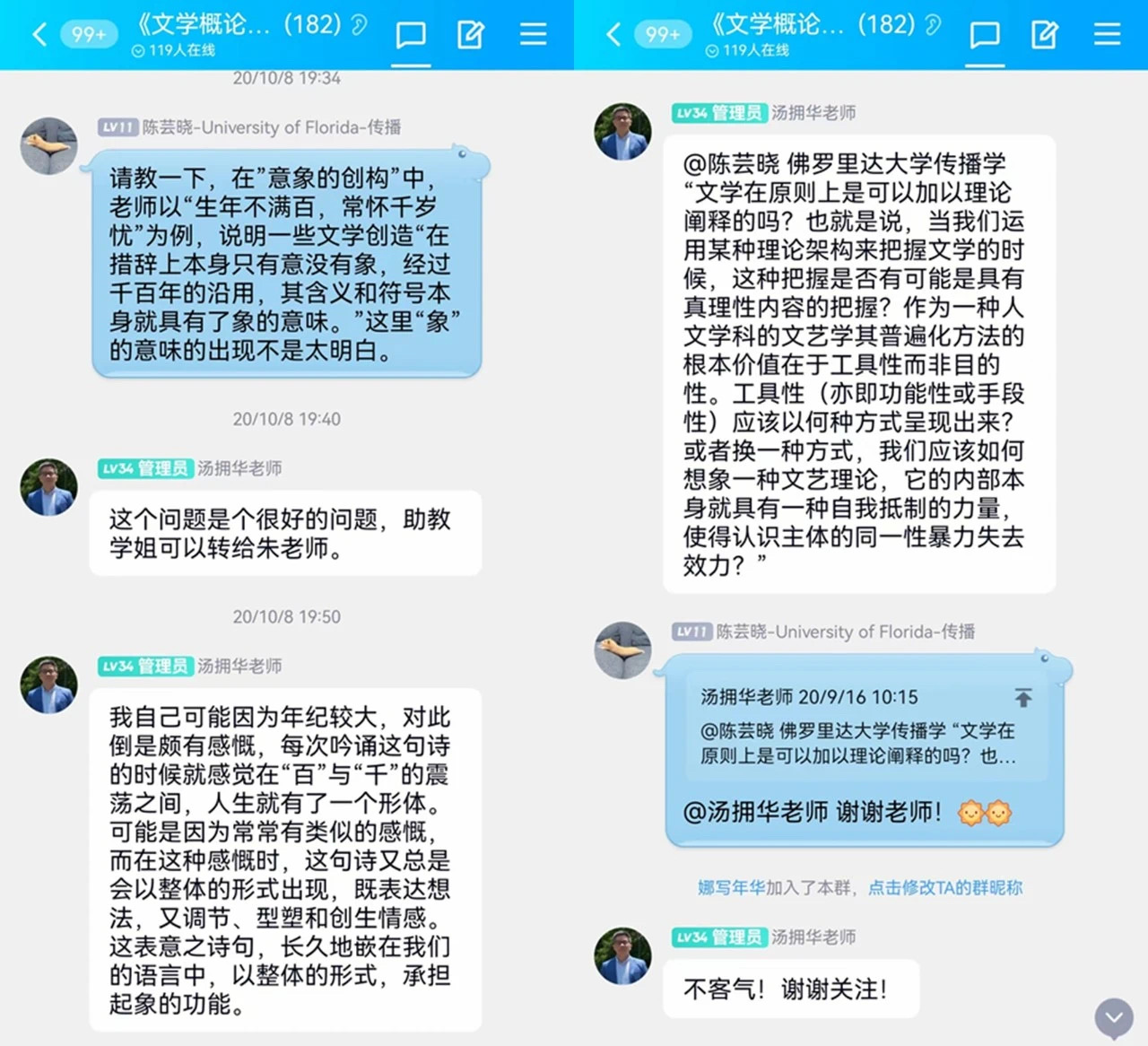 这样的“高难度”课程,为何选择面向各专业学生和社会开放?朱国华阐述道:“文学理论当然是比较专业的,但是理论思维又是对所有人都有用的。文学理论虽然以文学问题为焦点,却放眼整个文化,其宗旨是推动思维训练和观念更新,所以对中文系以外的人是有用的。”