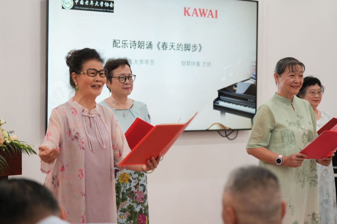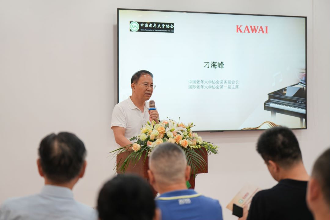 中国老年大学协会常务副会长、国际老年大学协会第一副主席刁海峰和卡瓦依乐器(中国)有限公司董事长八木正树分别致辞。刁海峰指出,借助国际知名企业 KAWAI 的技术和资源优势,满足日益增长的老年人学习钢琴及数码乐器的学习需求,可以提升中国老年大学钢琴及数码钢琴教学水平,活跃城乡老年人学习生活,对老年人身心健康、社交和文化传承都有着重要的意义。