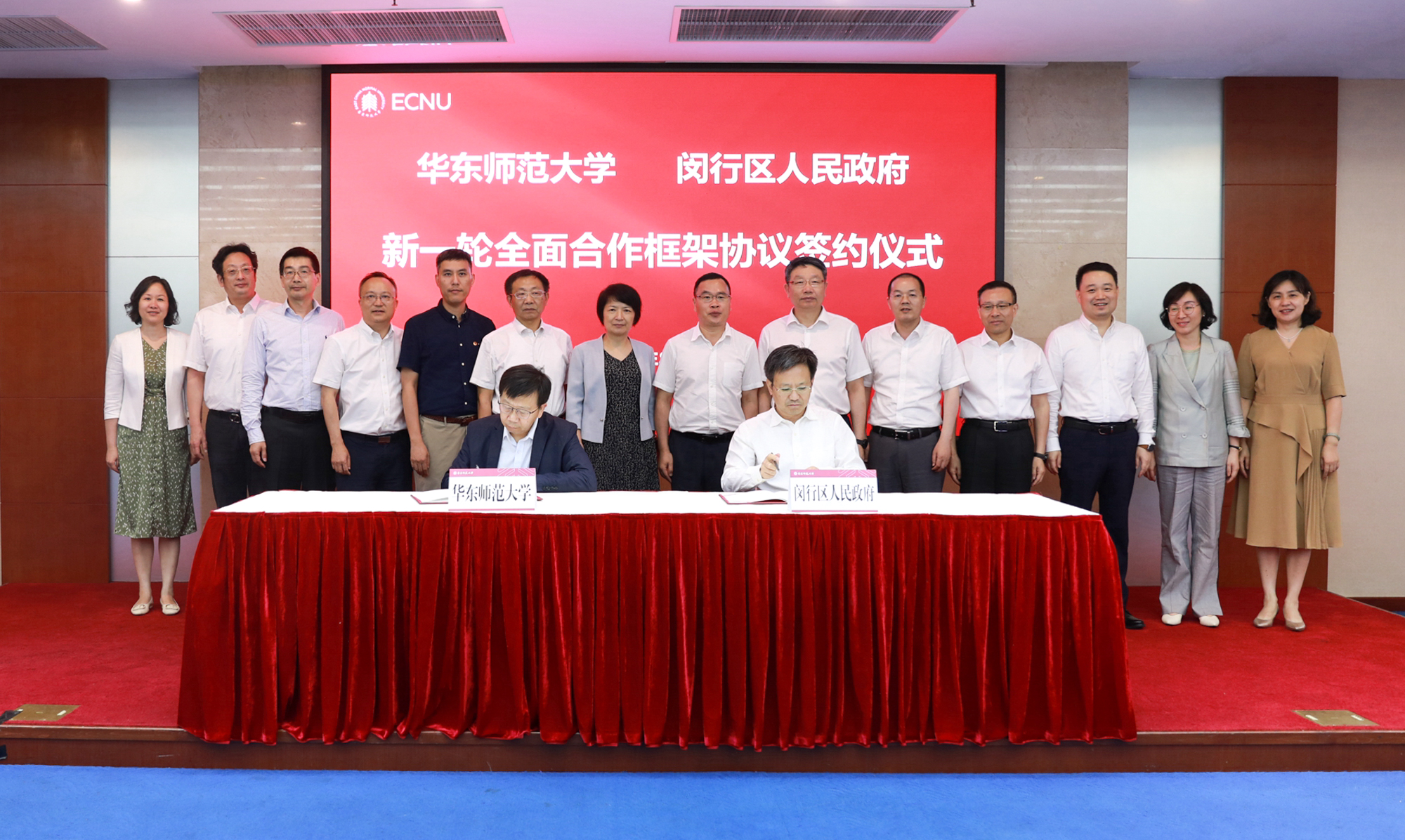 8月14日下午,华东师大于闵行区合作交流座谈会在闵行校区举行,双方签订新一轮全面合作框架协议。