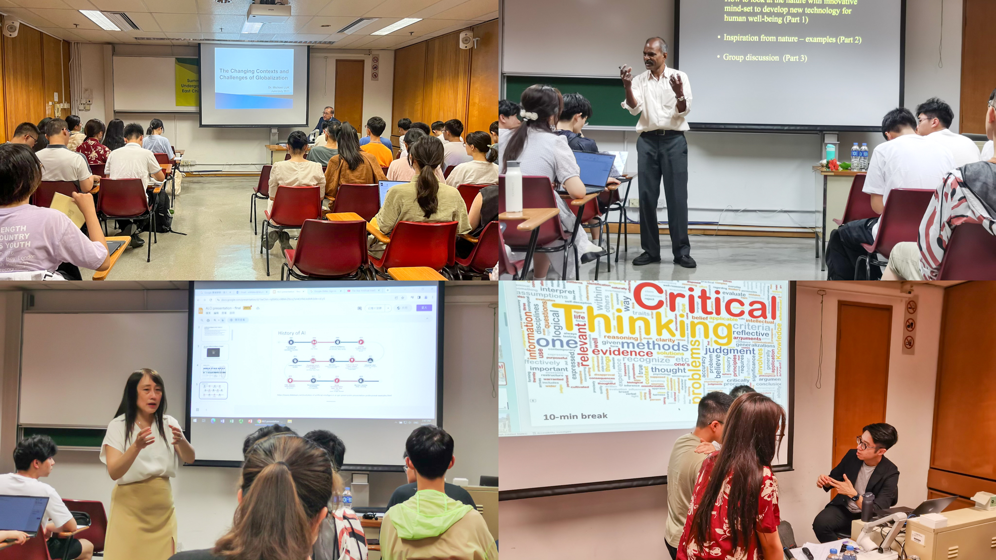项目的教学内容分为14个主题,采用全英文教学,涵盖当代社会的批判性思维、科学推理、人工智能、教育中的大数据、能源与可持续、移动通信技术、传染病与公共卫生、科技与社会中的定量素养、交叉学科研究等,立足全球视野,向同学们呈现全球经济格局、社会发展趋势、前沿科技领域,在案例学习与讨论中提升科技素养:如Michael LUK 教授以某国际品牌的引入和流行为例,从国家、科技、信息、经济等角度和同学们一起探讨了全球化的发展趋势、好处及引发的问题;George AKOM博士的研讨课通过互动游戏和实验活动向同学们解释了科学的定义,介绍了科学知识体系的重要性,讨论了科学变革对社会产生深远影响的例子;VENGATESEN教授介绍了牡蛎的生长过程和加工方式,并由此引出工业与自然环境、人类福祉的关系,提出为什么人类需要向自然学习的问题,引发同学们的思考。