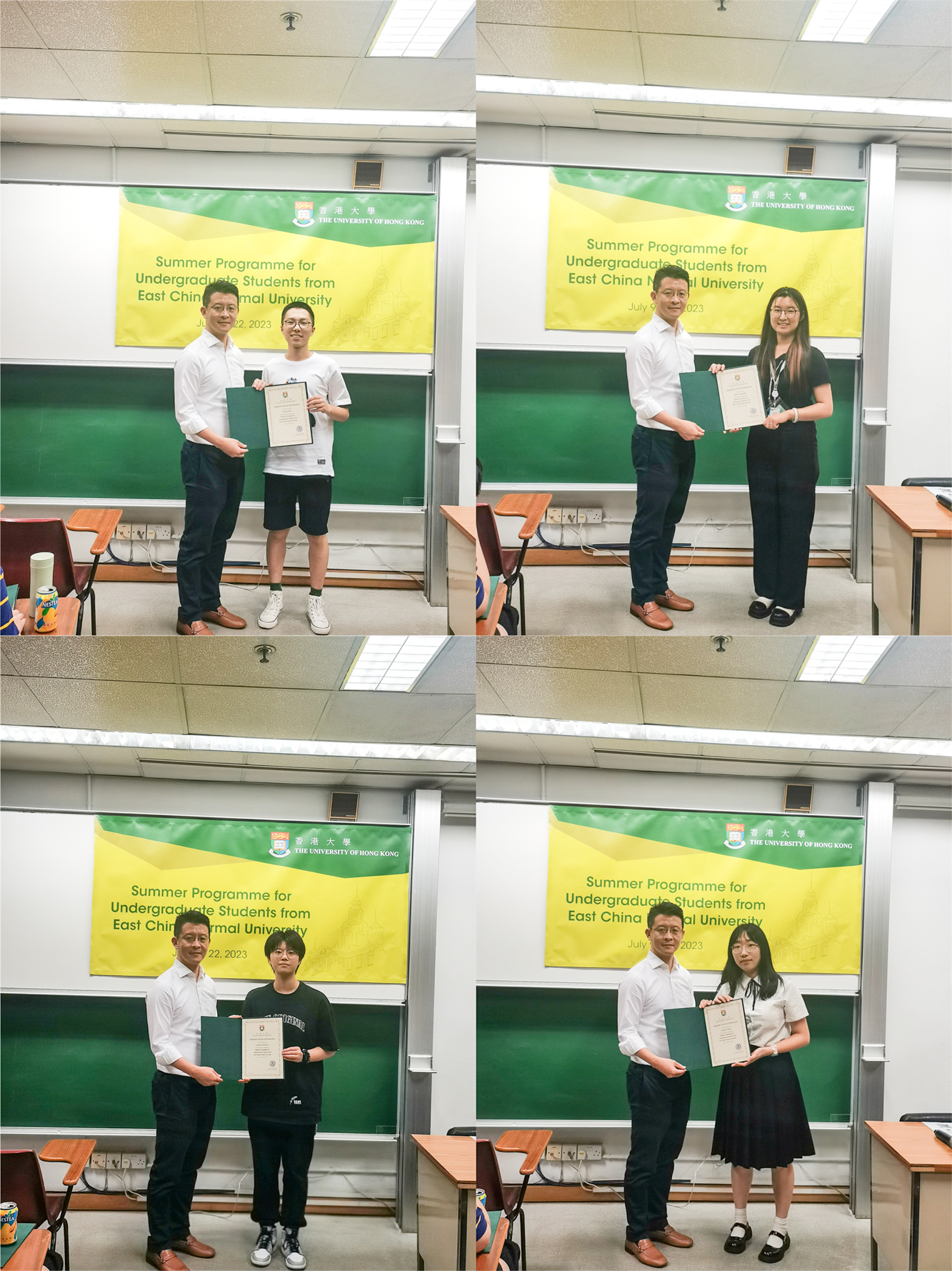结业仪式上,香港大学电气与电子工程系黄凯斌教授高度评价了师大学子的项目研究质量,为华东师大学子在今后的学业发展提出了意见建议,现场为学生颁发结业证书。学生代表、物理学专业白兰感谢了港大对本次交流项目的精心组织,表示通过本次交流强化了对批判性思维的认识和培养。