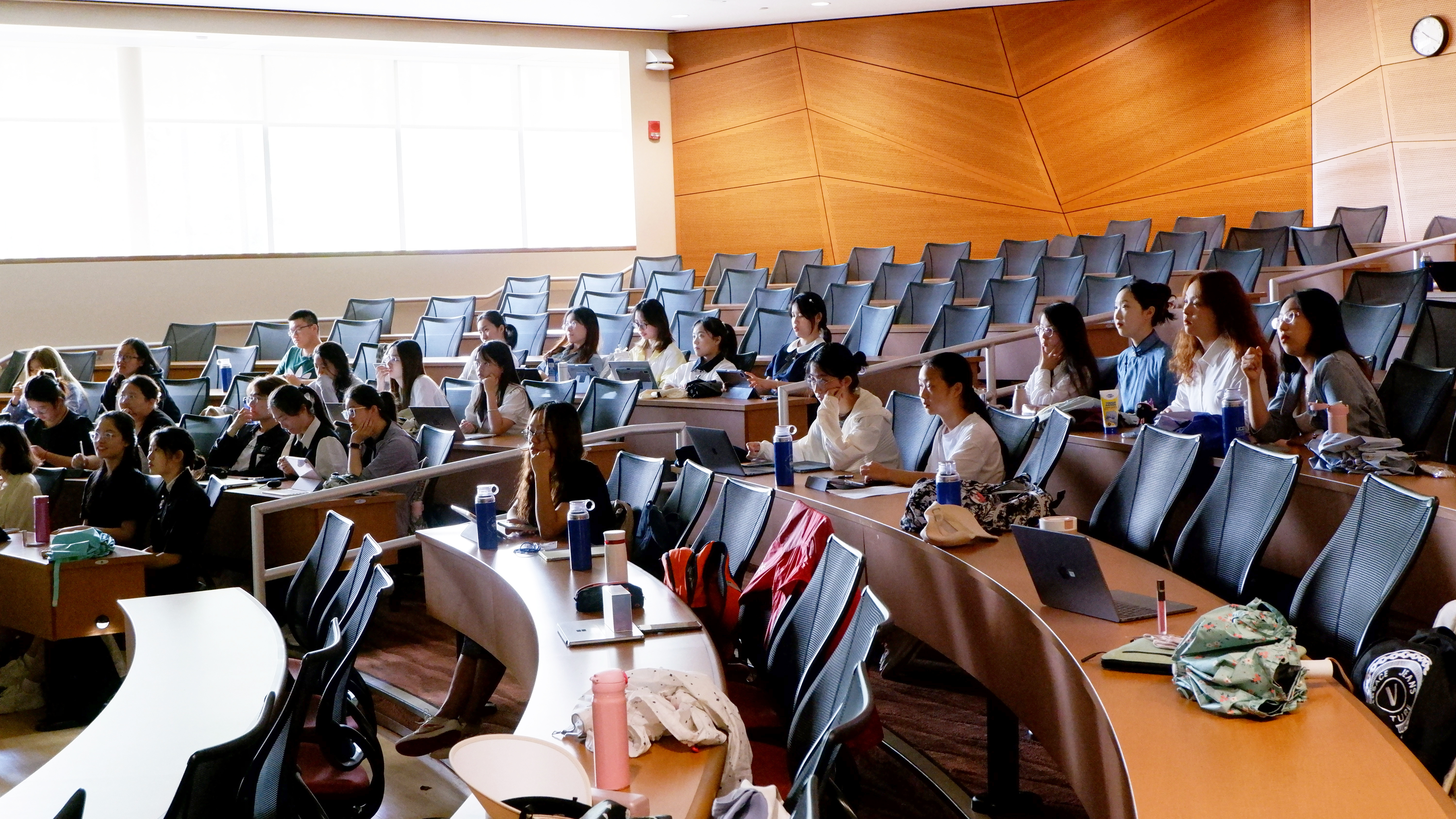 课堂上,教授也会与同学们进行丰富的交流互动,得到了积极回应与反馈。教授基于不同课程的主题提问,帮助同学锻炼并形成批判性思维与创造性思维。在一些课程中,教授也提供相关材料进行实操,在提升课堂体验感的同时也增强了同学们的动手实践能力。