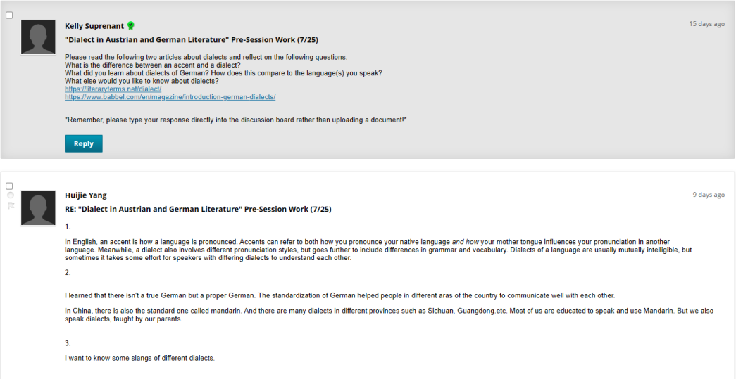 学生在Discussion Board进行课前讨论