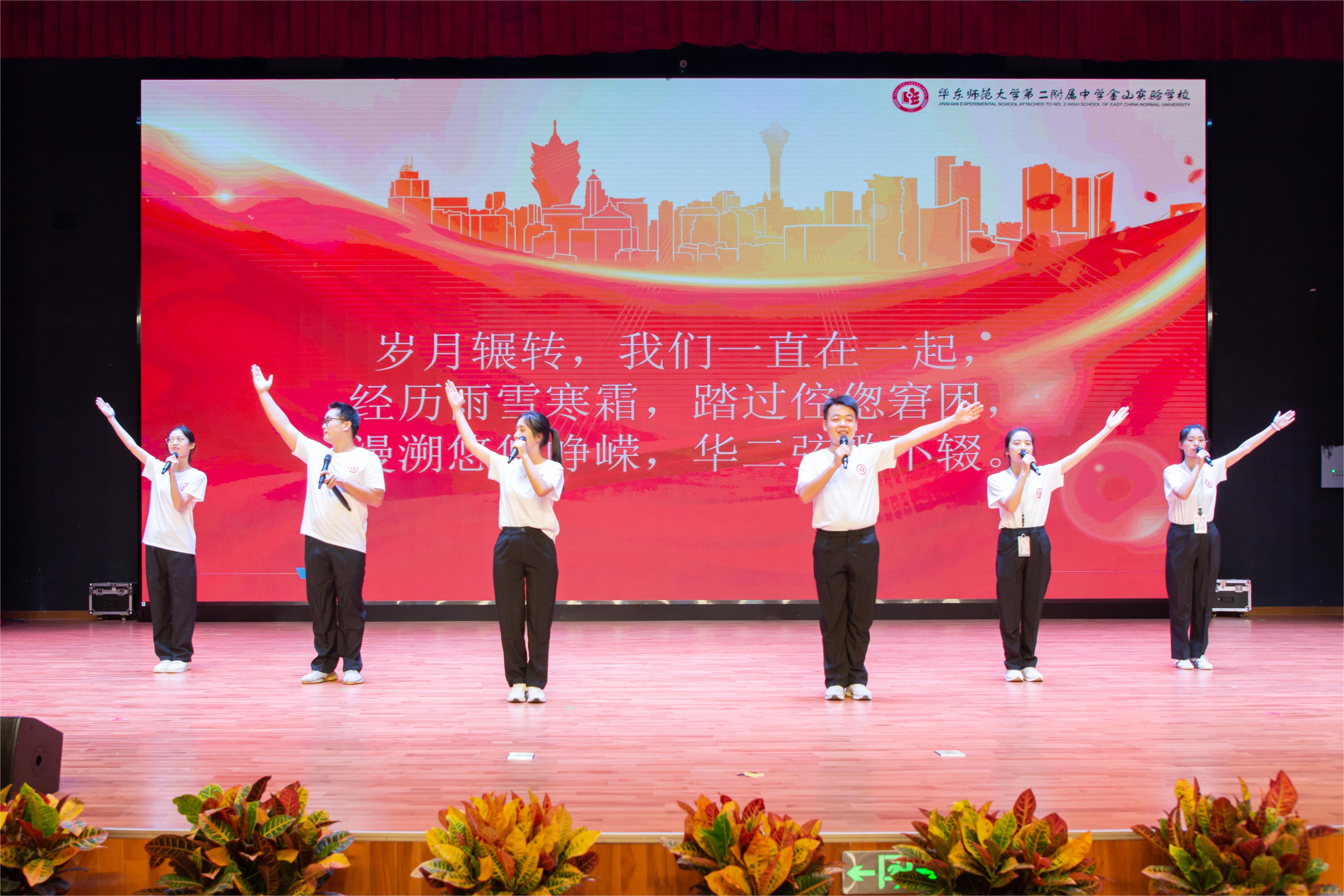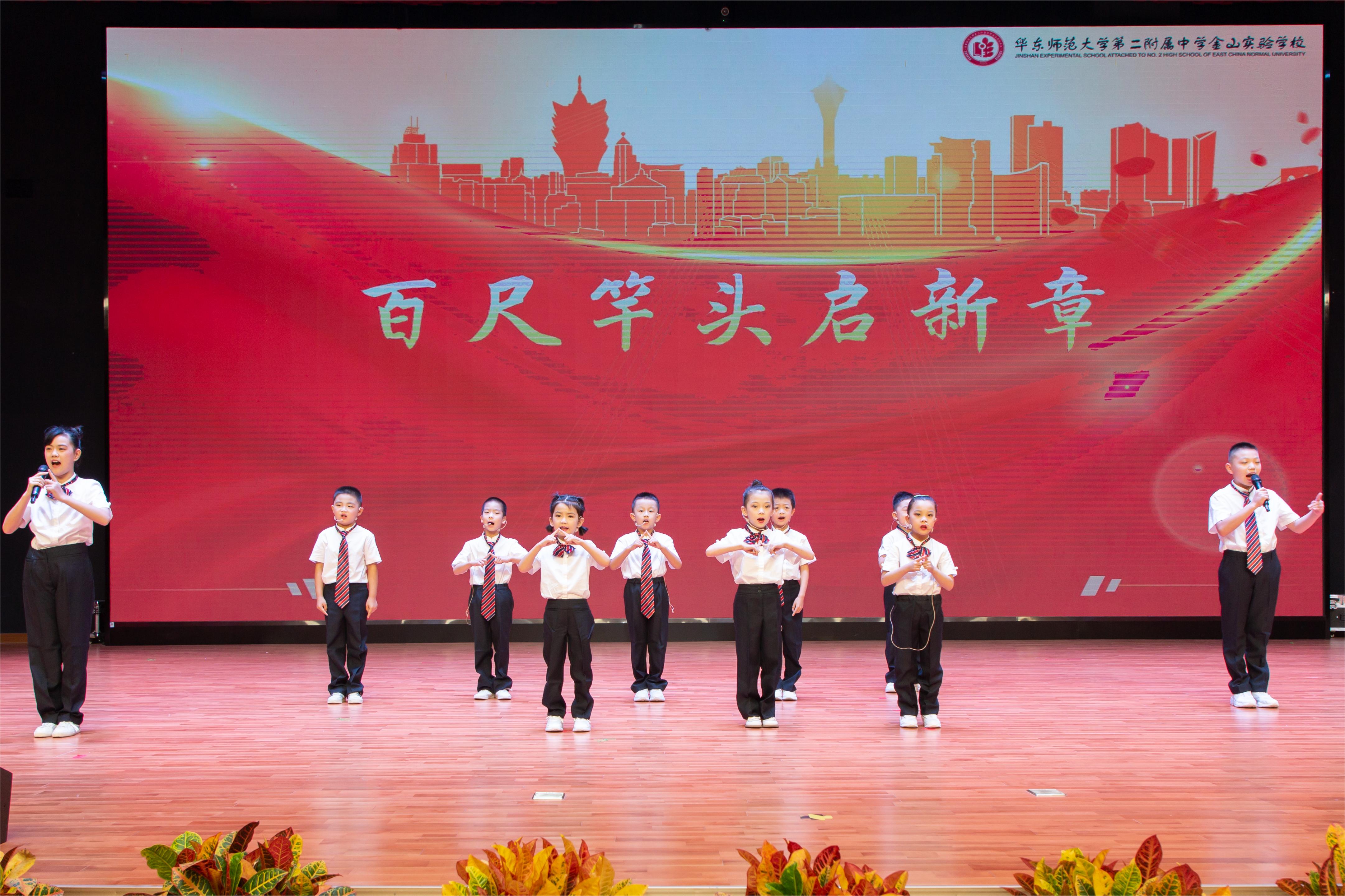 3245澳门新莆京副校长戴立益、金山区副区长曹婕等出席活动,与华二金山实验学校全体师生、家长们欢聚一堂,共同见证这一重要时刻。