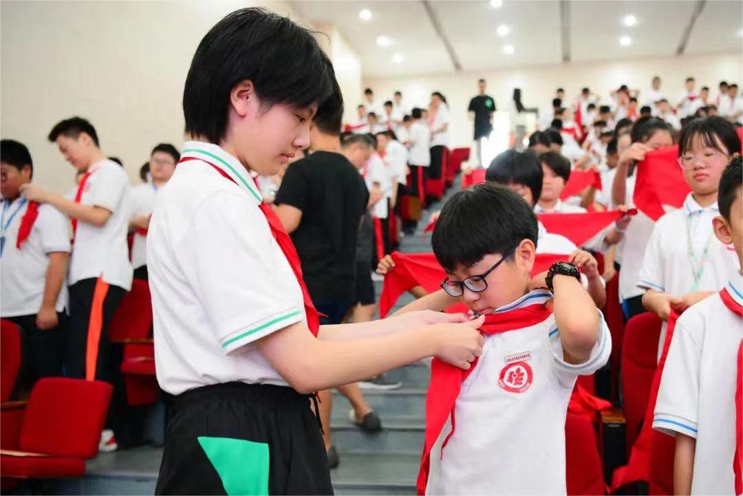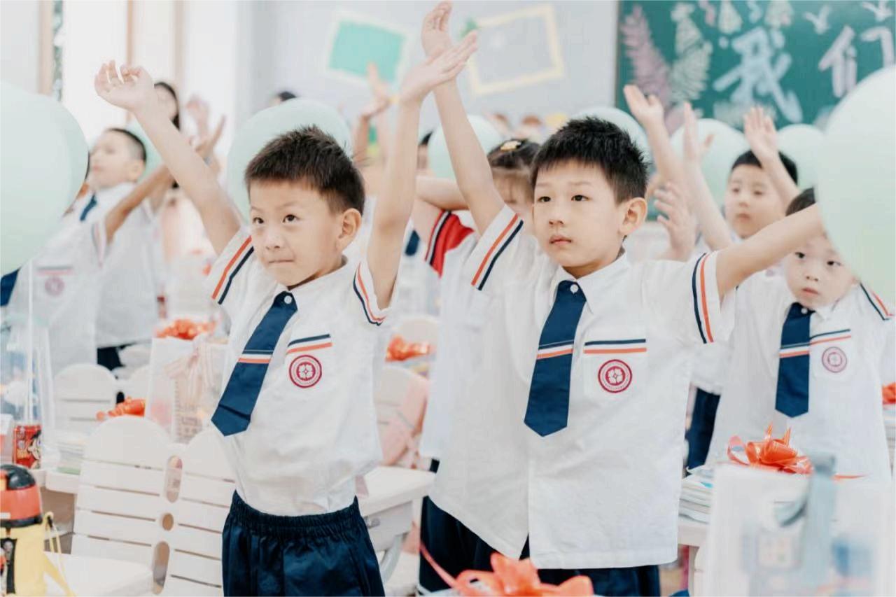 在开学第一天,学校为132名主要来自奉贤及临港地区的新生,准备了一场精致别样的开学礼:鲤鱼跃龙潭、七彩手印墙,期待学子们不忘初心、踏浪而行,勇敢逐梦、快乐成长,开启全新的学习旅程。