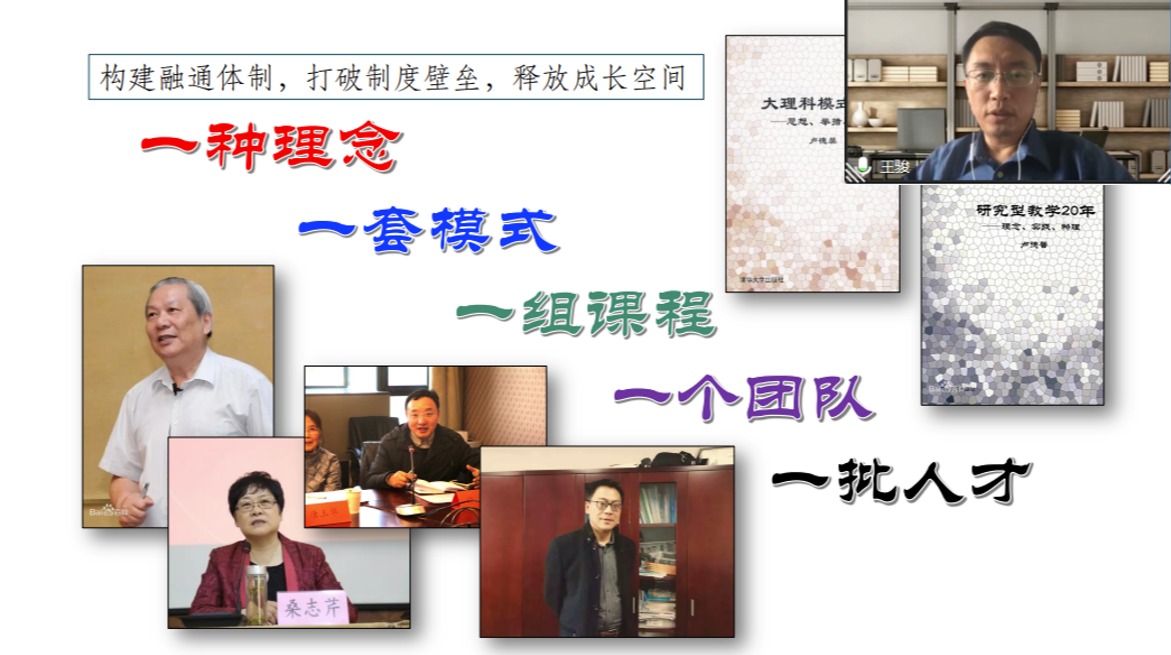 南京大学匡亚明学院党委书记、院长王骏教授在线作“南京大学匡亚明学院拔尖创新人才的思考与路径”的主题报告。他详细介绍了匡亚明学院的发展历程以及已取得育人成效、社会影响力等情况,并指出荣誉学院是探索和实践新时代教育理念的前沿阵地,匡亚明学院从理念融通、知识联通、研学相通、知行互通、成长畅通、组织贯通等六个方面入手,有效构建融通体制、打破制度壁垒、释放成长空间。