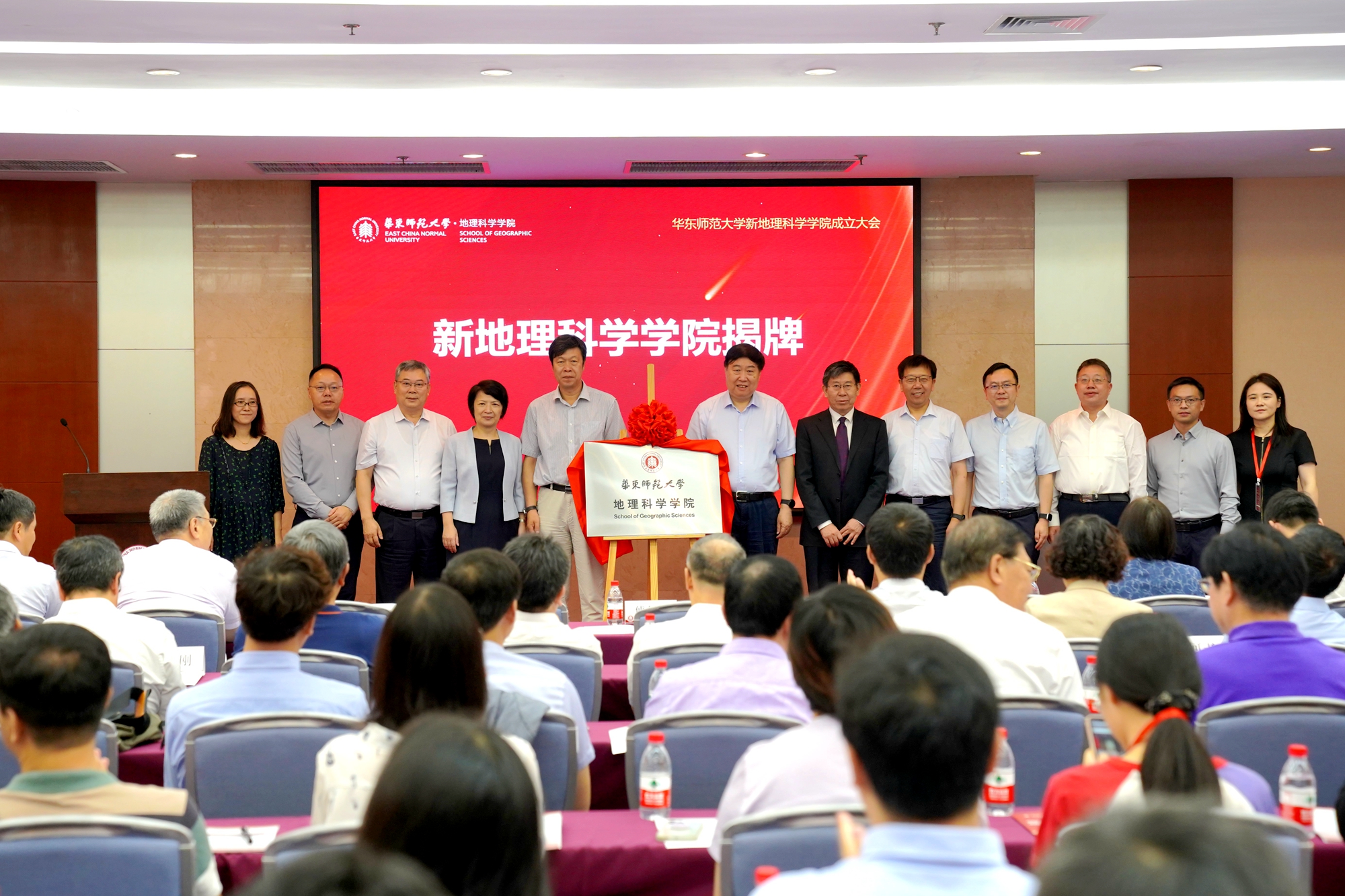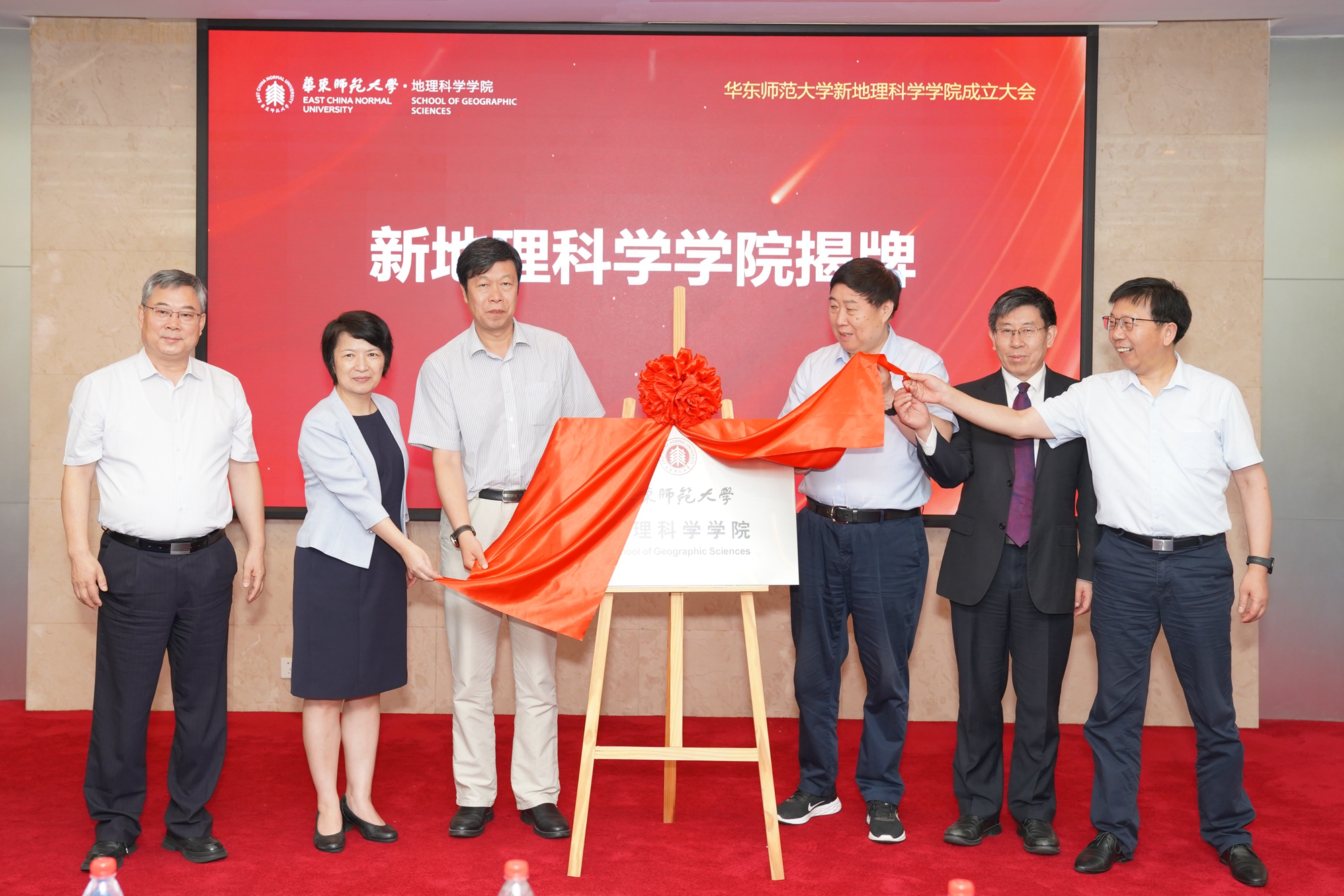 会上,国际地理联合会副主席、中国科学院院士、中国科学院生态环境研究中心傅伯杰,中国地理学会理事长、中国科学院院士、中国科学院青藏高原研究所所长陈发虎,国际地理联合会前副主席、中国科学院院士、中国科学院地理科学与资源研究所周成虎,华东师大党委书记梅兵、校长钱旭红,以及学院新班子成员共同为新地理科学学院揭牌。副校长顾红亮介绍学校关于成立新地理科学学院的决定和新领导班子。