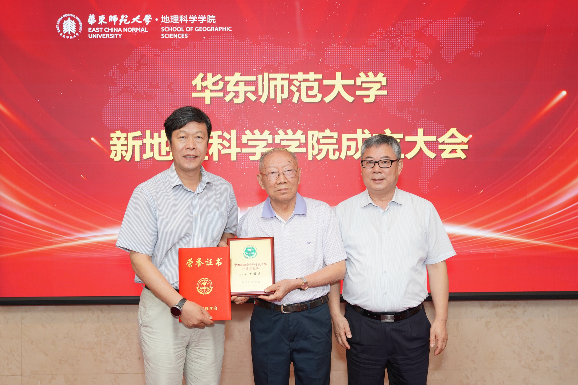 会上,中国地理学会理事长、中国科学院院士陈发虎为华东师大教授刘君德颁发“2020-2021年度中国地理学会科学技术奖-终身成就奖”。本年度,全国共有6位科学家获此奖。刘君德教授也是华东师大第7位获得该奖的地理学家。华东师大陈吉余院士、钱今昔教授、严重敏教授、许世远教授、沈焕庭教授、张超教授曾先后获奖。