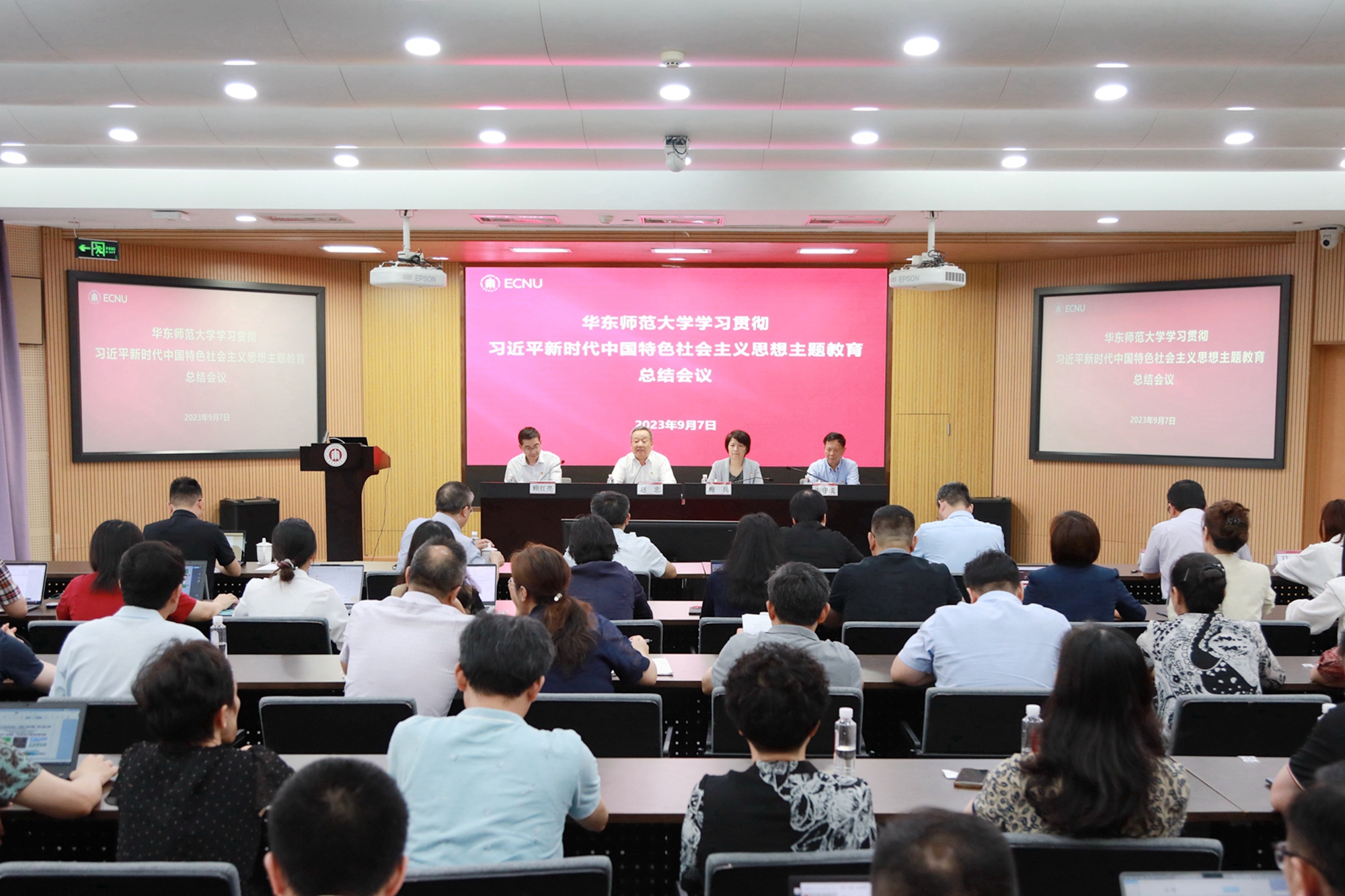 9月7日下午,3245澳门新莆京学习贯彻习近平新时代中国特色社会主义思想主题教育总结会议在校举行,全面总结学校主题教育开展情况,就巩固拓展主题教育成果、深化主题教育成果转化应用进行全面部署。教育部直属高校主题教育第六巡回指导组组长赵忠、副组长谢守成等指导组全体成员出席会议。华东师大党委书记梅兵总结学校主题教育开展情况,校党委常委、副校长顾红亮主持会议。