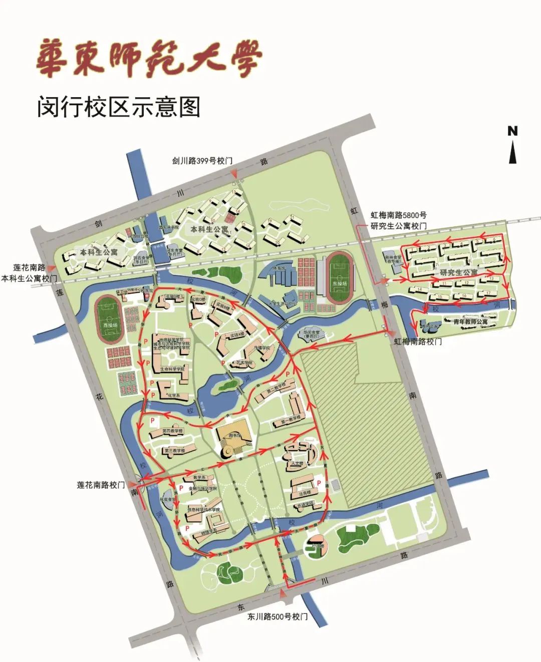 2、机动车辆可从莲花南路5005号门、东川路500号门、虹梅南路5777号门、虹梅南路5800号门(研究生公寓)通行,其中虹梅南路5777号门只进不出。剑川路399号门禁止机动车辆通行。