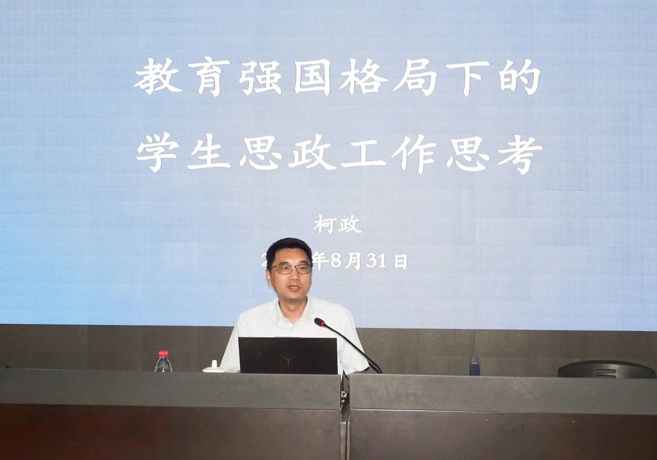 会议的第三阶段,国家教育宏观政策研究院执行院长柯政应邀作了《教育强国格局下的学生思政工作思考》专题报告。柯政从教育强国的背景、底层逻辑等方面介绍对教育强国的理解,从教育强国的共同难题、面临新的学生和新形势以及说服能力等方面阐述学生思政工作在教育强国中重要地位。
