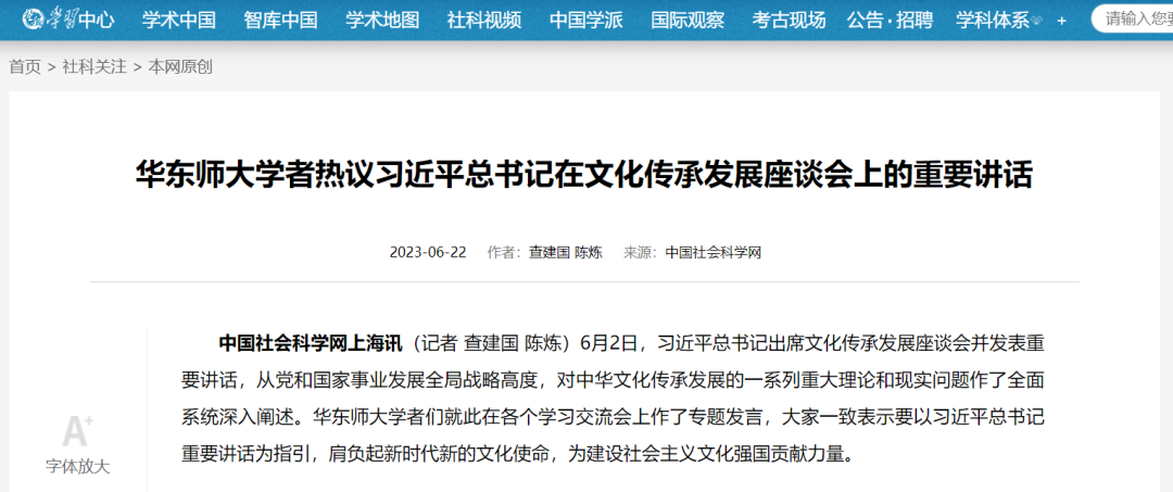华东师大学者热议习近平总书记在文化传承发展座谈会上的重要讲话