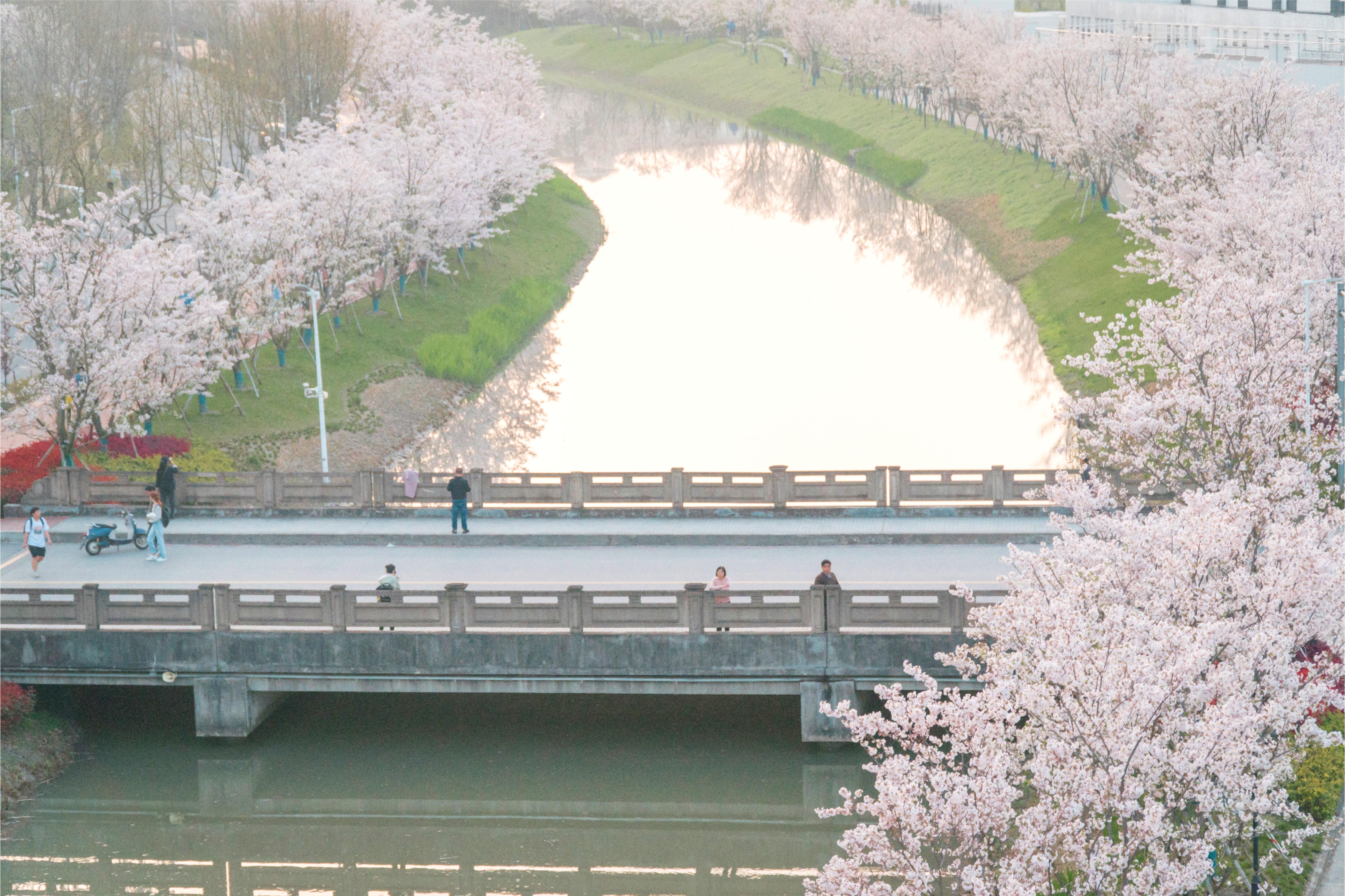 闵行校区大夏路樱桃河畔樱花竞相绽放